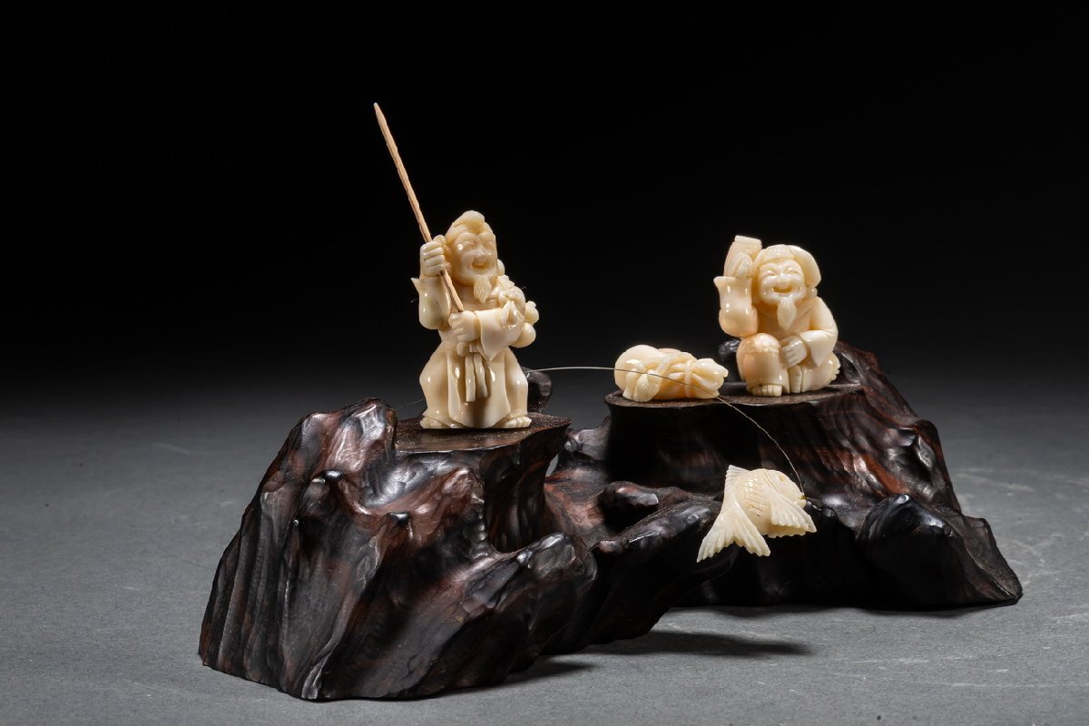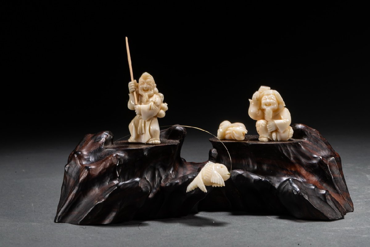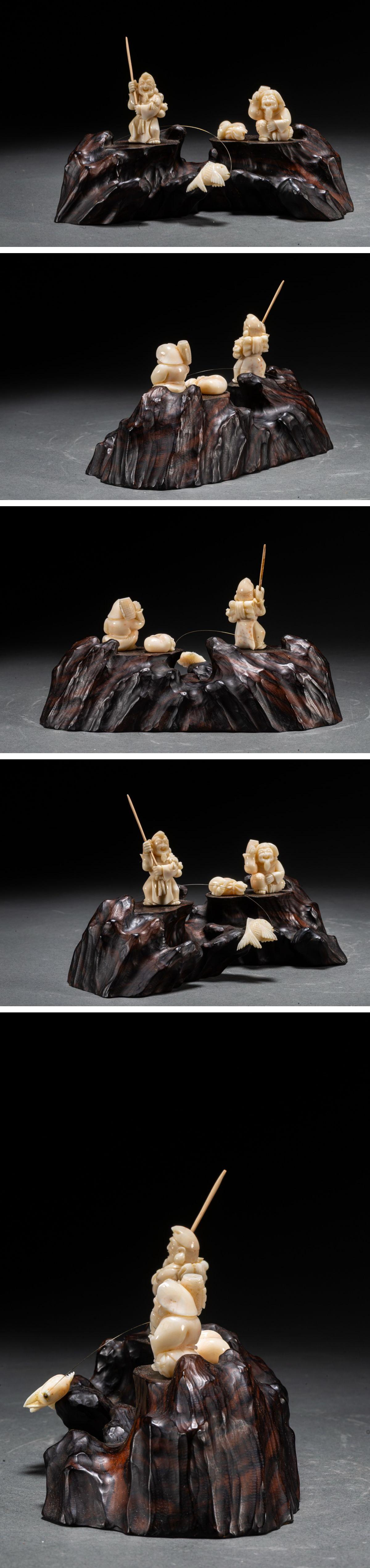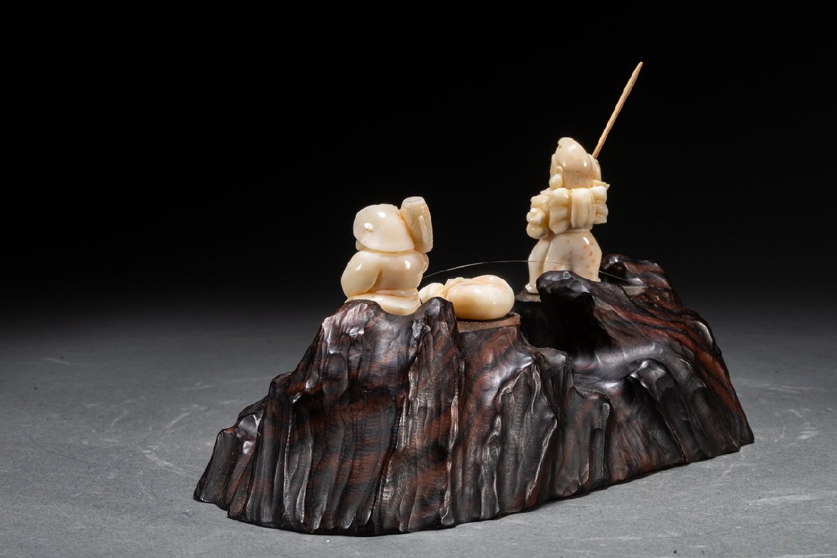 【清】某有名オークション購入 天然材 赤珎材 大黒天恵比寿置物 高級美術品 時代コレクション7L9-49S2