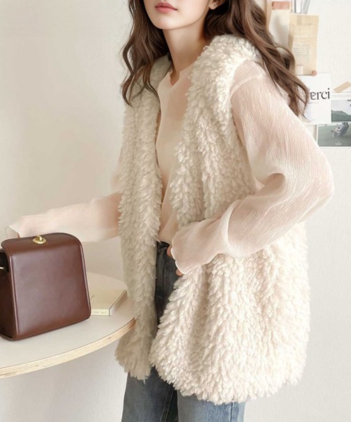 参考商品名:パッと目を惹くコーデの主役。ボリュームプードルフェイクファーベスト