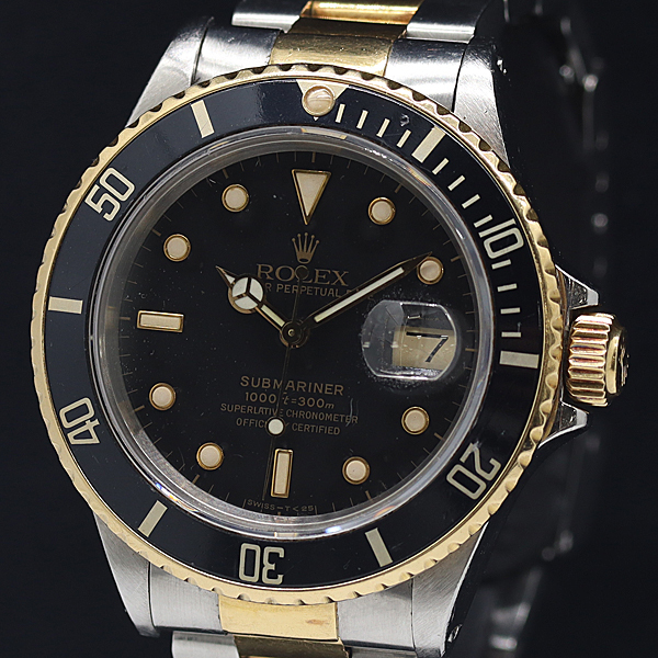 1円 稼働 ロレックス サブマリーナーデイト 16803 R782425 YG×SS AT 黒文字盤 メンズ腕時計 0514701 10NBT KTU ABC