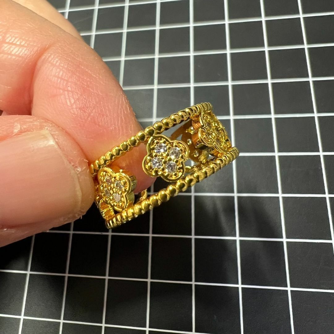 4つの花弁にはキラキラと輝くジルコニアが綺麗な指輪です。