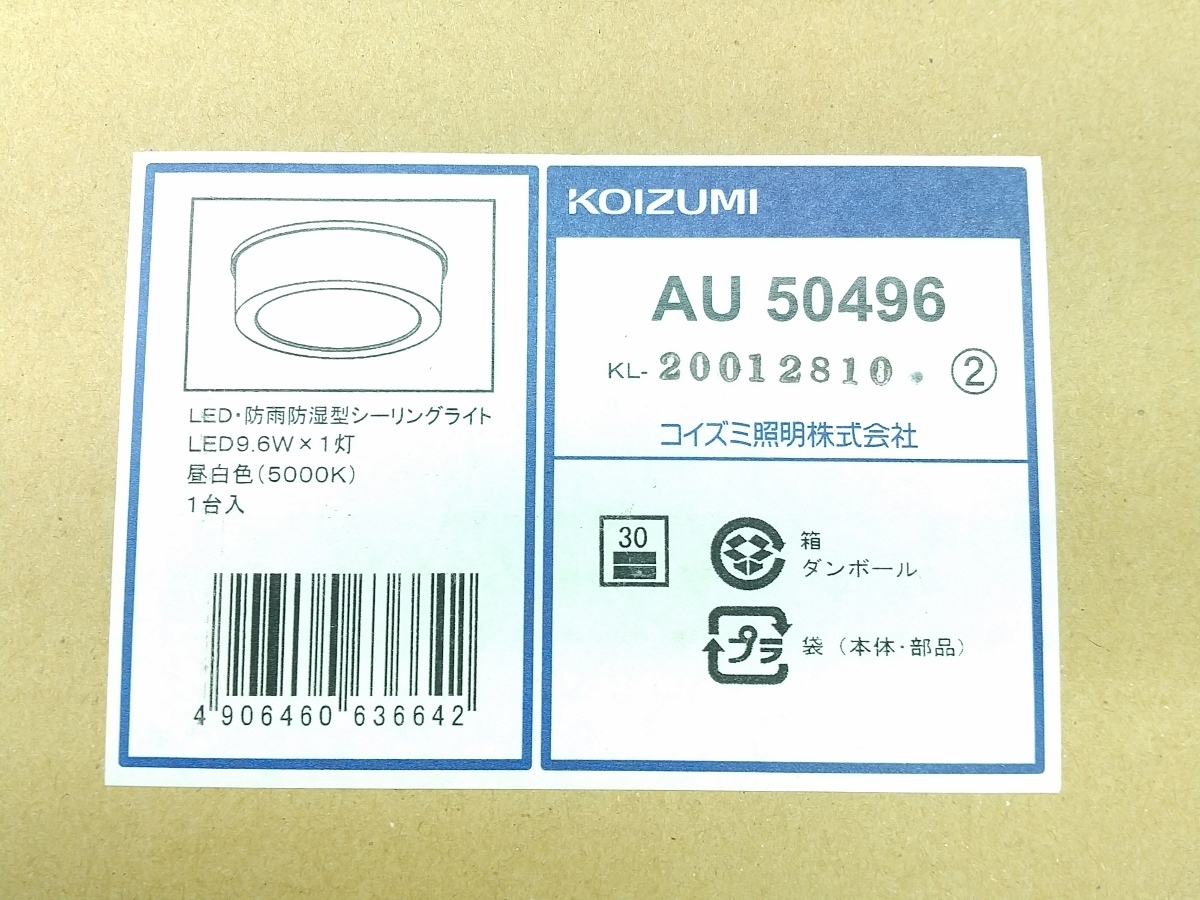 【 未使用 コイズミ KOIZUMI LEDシーリング ライト 防雨防湿型 AU50496 】 | |