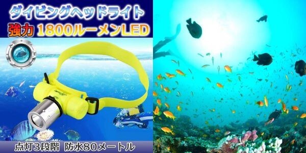 防水 ダイビング ヘッドライト 1800ルーメン LEDライト CREE 80m防水 点灯3モード 高品質