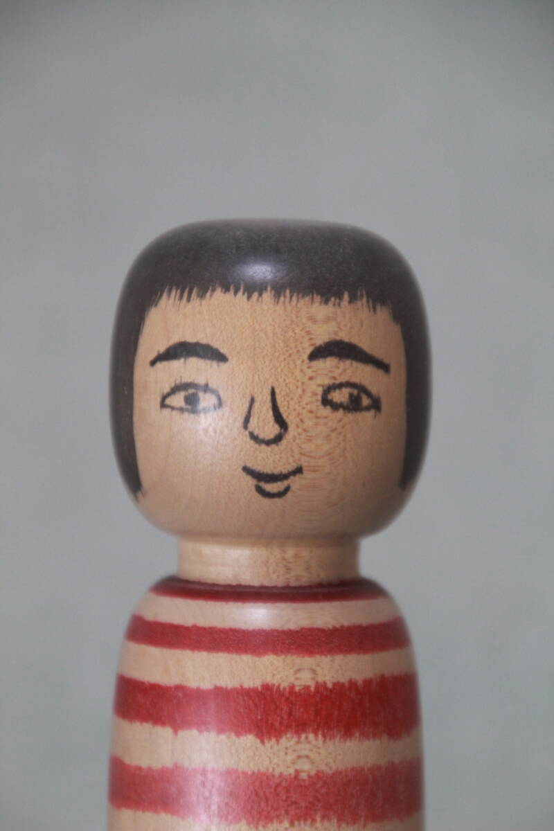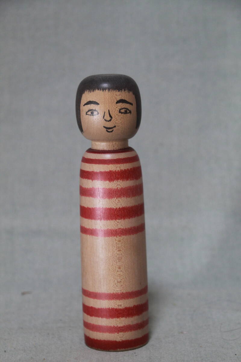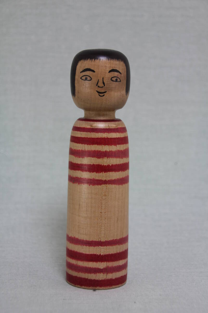 「7 今晃 伊太郎型茶ロクロ線模様 こけし」