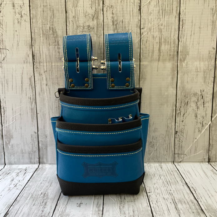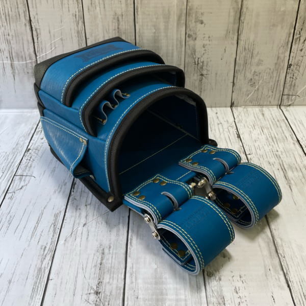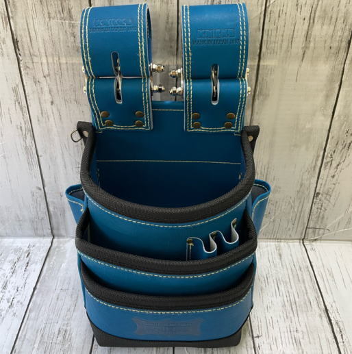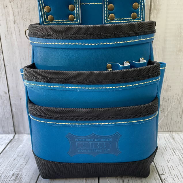 チェーンタイプ高級青色グローブ革使用3段腰袋(バリスティックナイロ ン補強仕上) ●上部袋挿入縁は、非通電補強材を縫い込み、革の垂れを防止しています。 幅180×高さ330×奥行130mm メーカー:ニックス(KNICKS) |