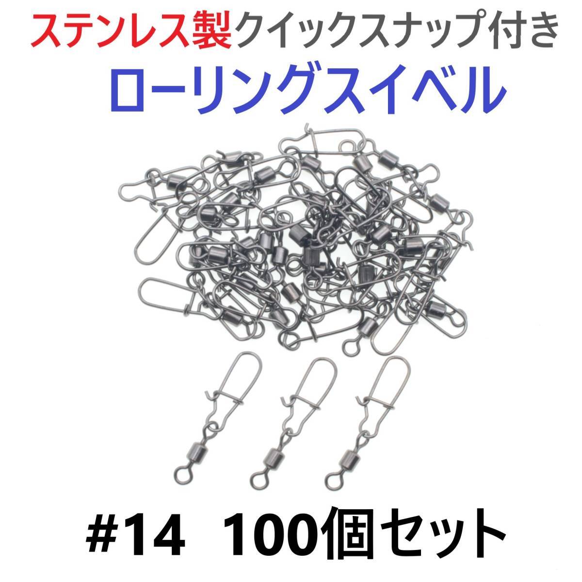 【送料無料】ステンレス製 クイックスナップ付き ローリングスイベル #14 (17㎜ 4㎏) 100個セット スナップ サルカン 様々な釣りに!