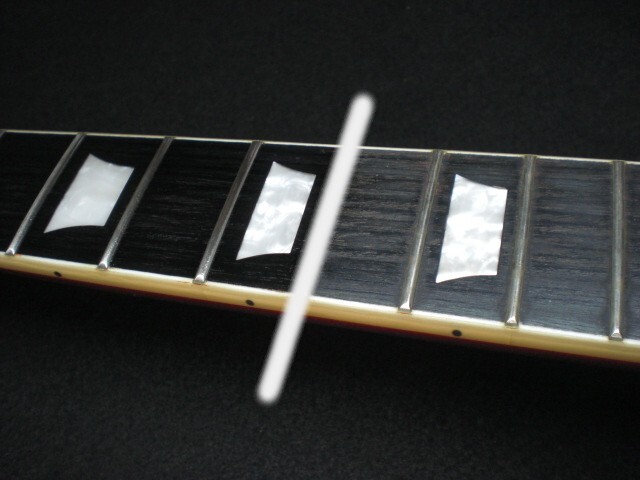 ジャンボタイプのフレットは指板を傷めない様しっかりマスキングし、1本1本コンパウンドで磨きあげましたのでピカピカです。