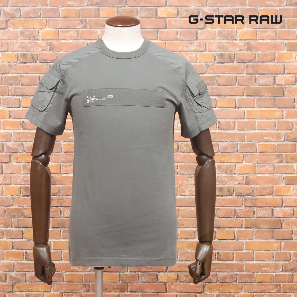 1円/G-STAR RAW/XSサイズ/ミリタリー調Tシャツ MIX WOVEN CARGO TEE D20000-A628 ウォッシュ ワイルド 半袖 新品/カーキ/jh162/