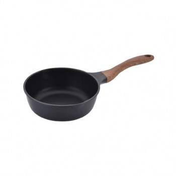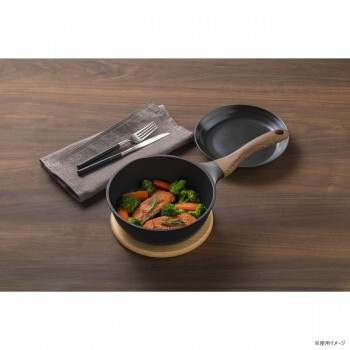 本体は熱ムラが少なく変形に強いアルミダイカスト製。留め具の凹凸がなく、お手入れしやすい。木目調のシリコーンコーティングを施したハンドルは、気持ちいい触りごこち。外面はセラミック塗膜加工で汚れを落としやすくキズも付きにくいです。 |