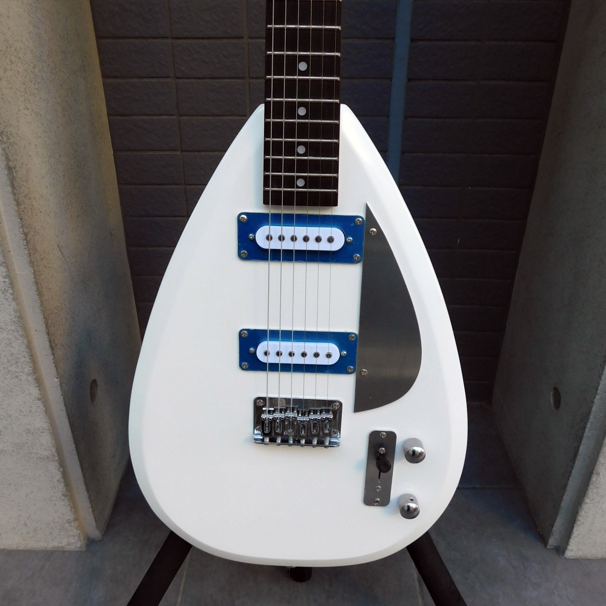 独特の涙型ボディとホワイトカラーが印象的な1本。