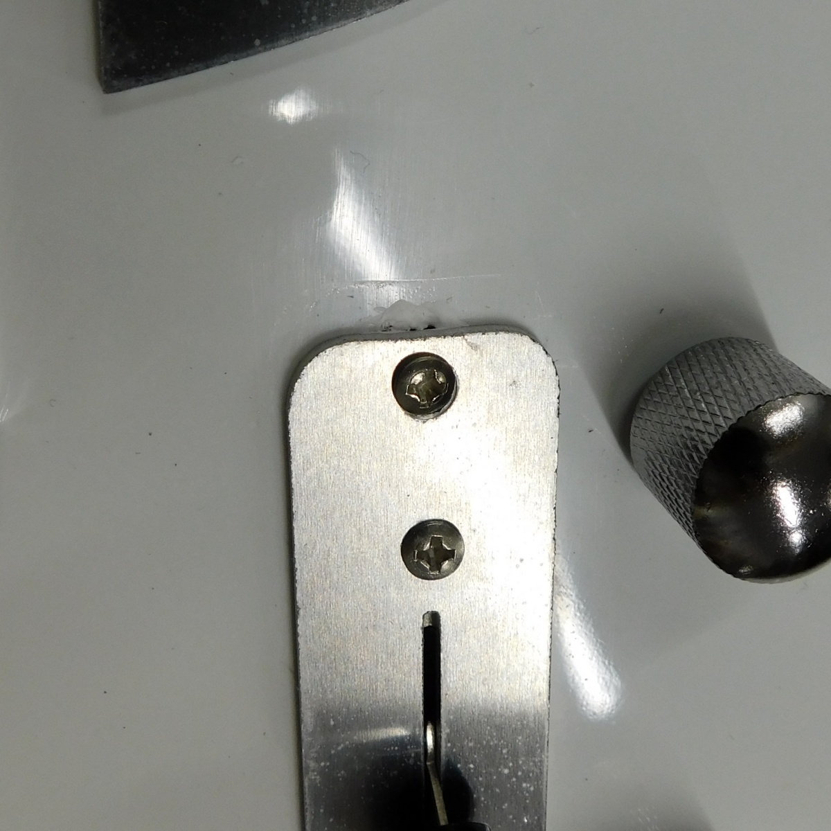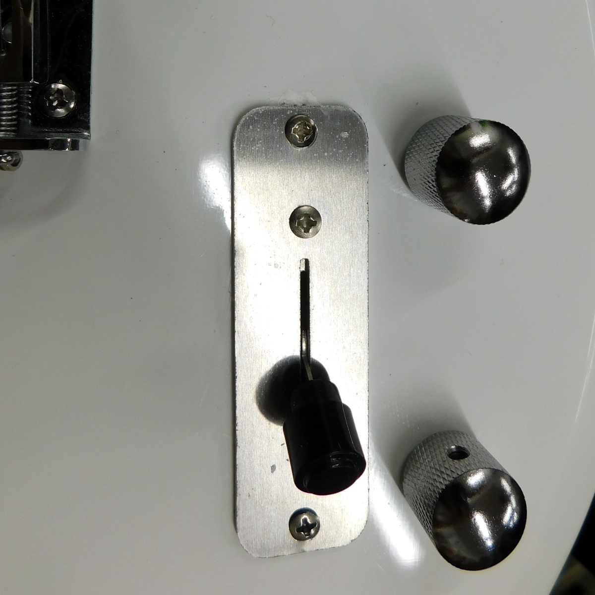 ピックアップカバーがブルーなのは、保護フィルムが貼ってあるためです。 剥がせば、ピックガードと同じシルバーになります。
