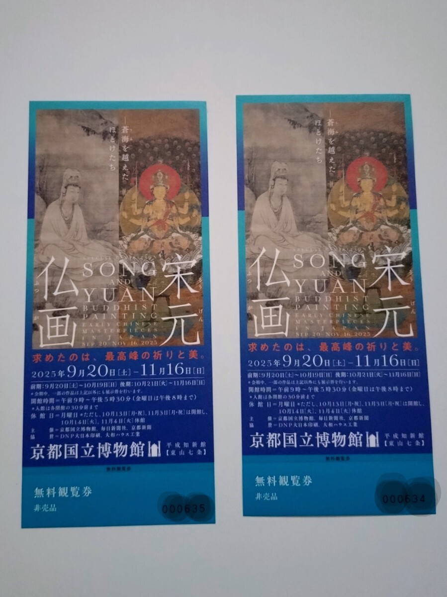京都国立博物館 特別展 宋元仏画─蒼海 を越えたほとけたち 無料 観覧券 2枚です。
