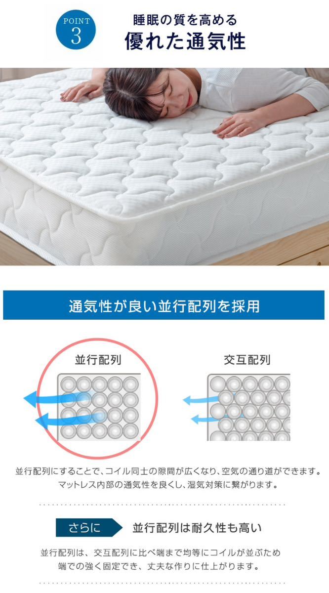 ・コイルの並び方は並行配列なので、通気性にも優れます。