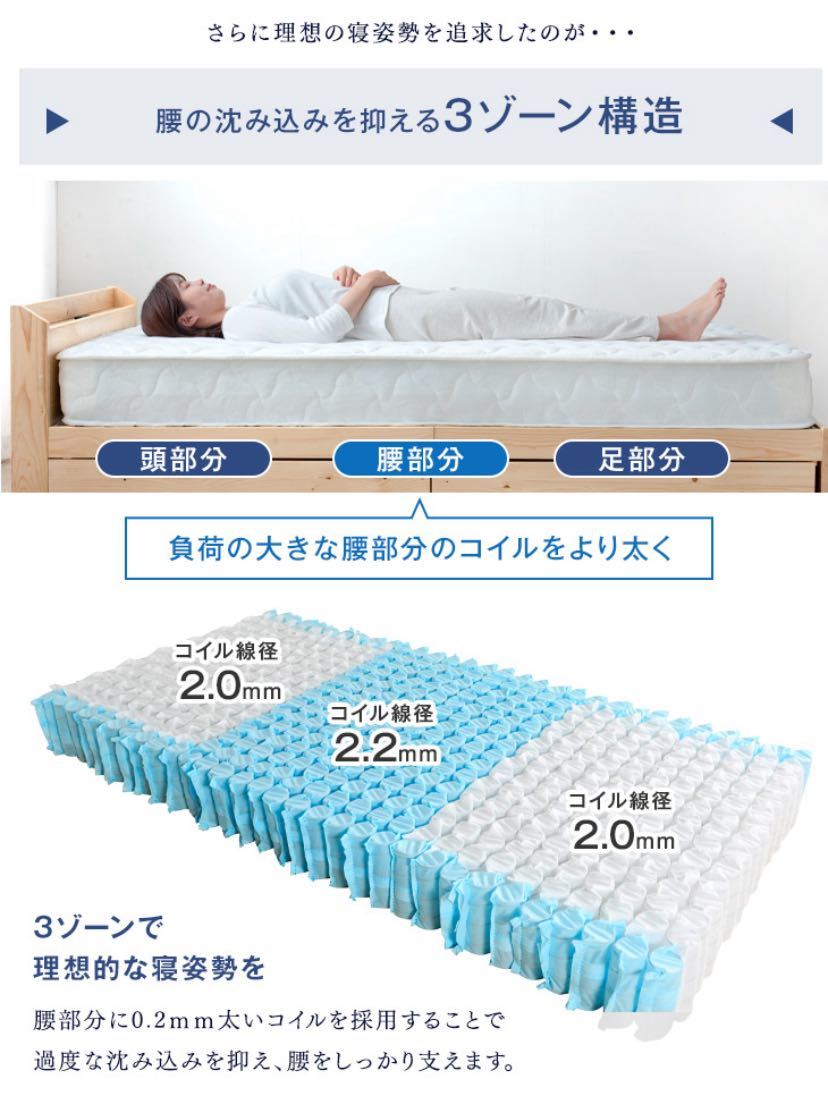 ・1番重い腰部分のポケットコイルの太さを変え、より腰をしっかりと支えることができるベッドマットレス。
