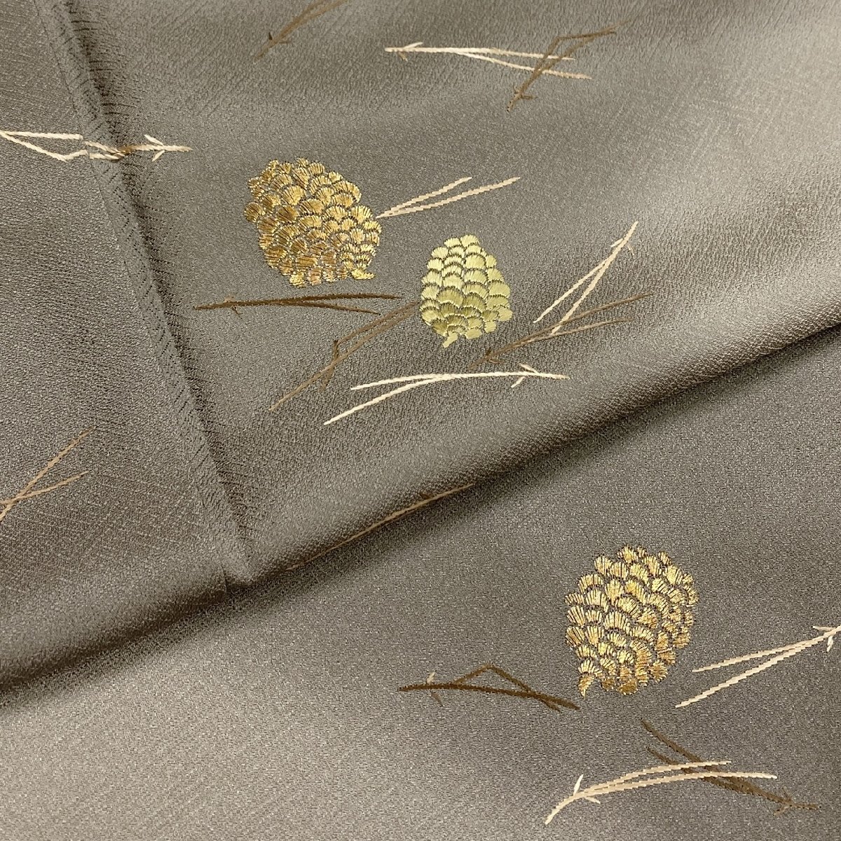 松ぼっくりが描かれた総刺繍の訪問着でございます。