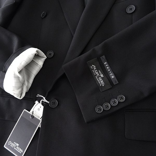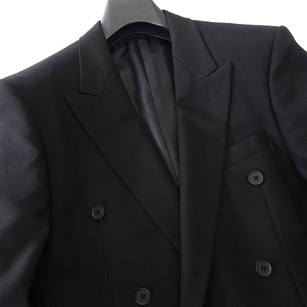 新品 未使用 紙タグあり ※ハンガーは付属いたしません※ A8サイズ(標準体型の2XLサイズ相当) 胸囲98 胴囲86 身長185 ※写真は別サイズを使用している場合がございます※ ※商品に記載されたサイズ・寸法です※ 【ジャケット】 肩幅48cm 身幅56cm 袖丈65cm 着丈81cm 【スラックス】 ウエスト82~92cm(内回り1周) 股上30cm 股下94cm 裾幅23cm 腿幅32.5cm(股下10cm部分) 表:毛100% 裏 身頃:ポリエステル100% 袖:キュプラ100% ブラック |