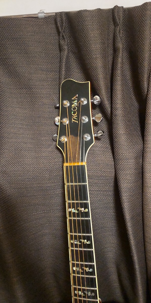 傷、割れなど多数あります。音は綺麗ですが弦高が高いので弾き辛いです。