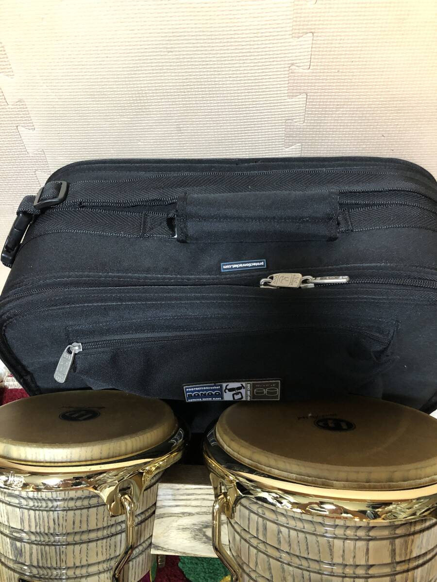 PROTECTIONRACKET(プロテクションラケット)のボンゴ用バッグ。インナーはフリース仕様。取り外し可能なショルダーストラップと2つのハンドル付き。