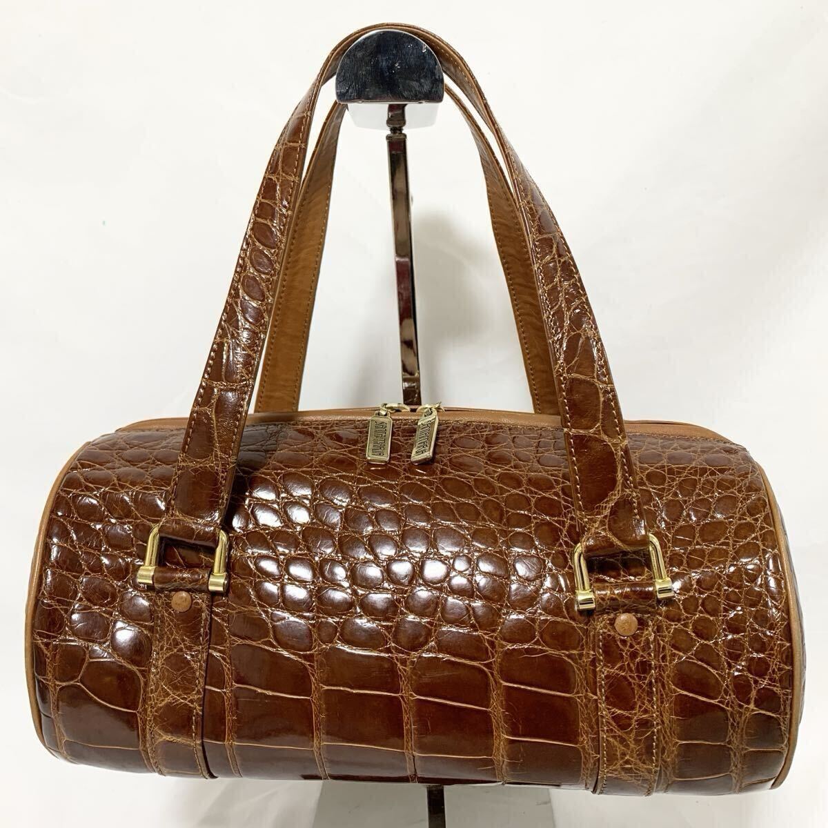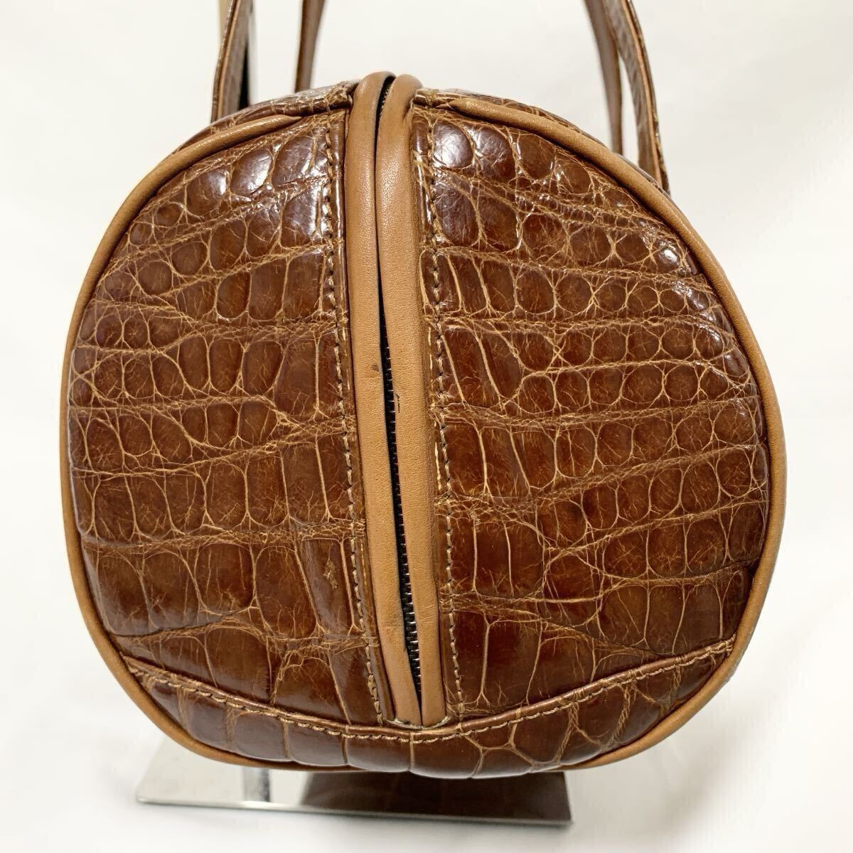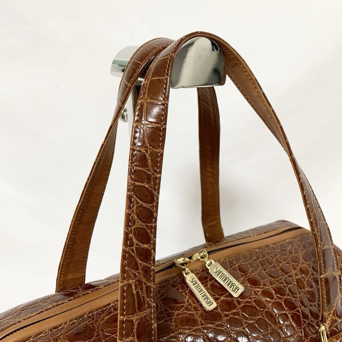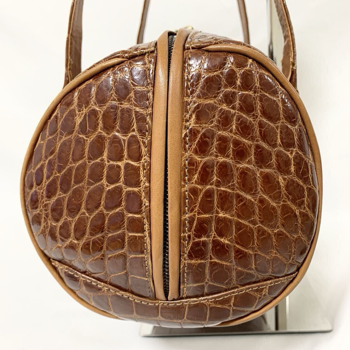 1円 SANTAMARIA サンタマリア マットクロコダイル ハンドバッグ ボストン ブラウン 茶 ドラム型 ゴールド金具 レザー レディース ワニ本革