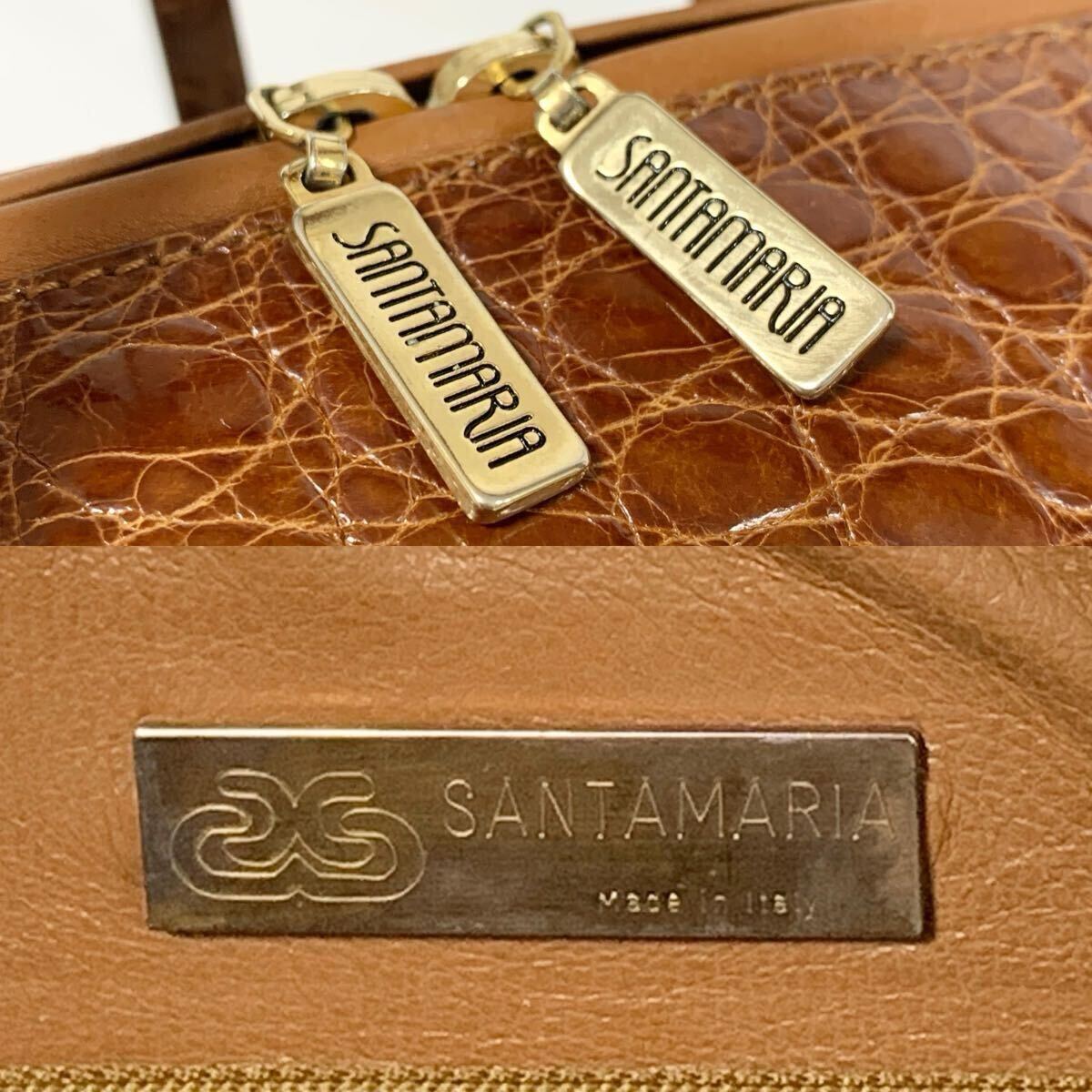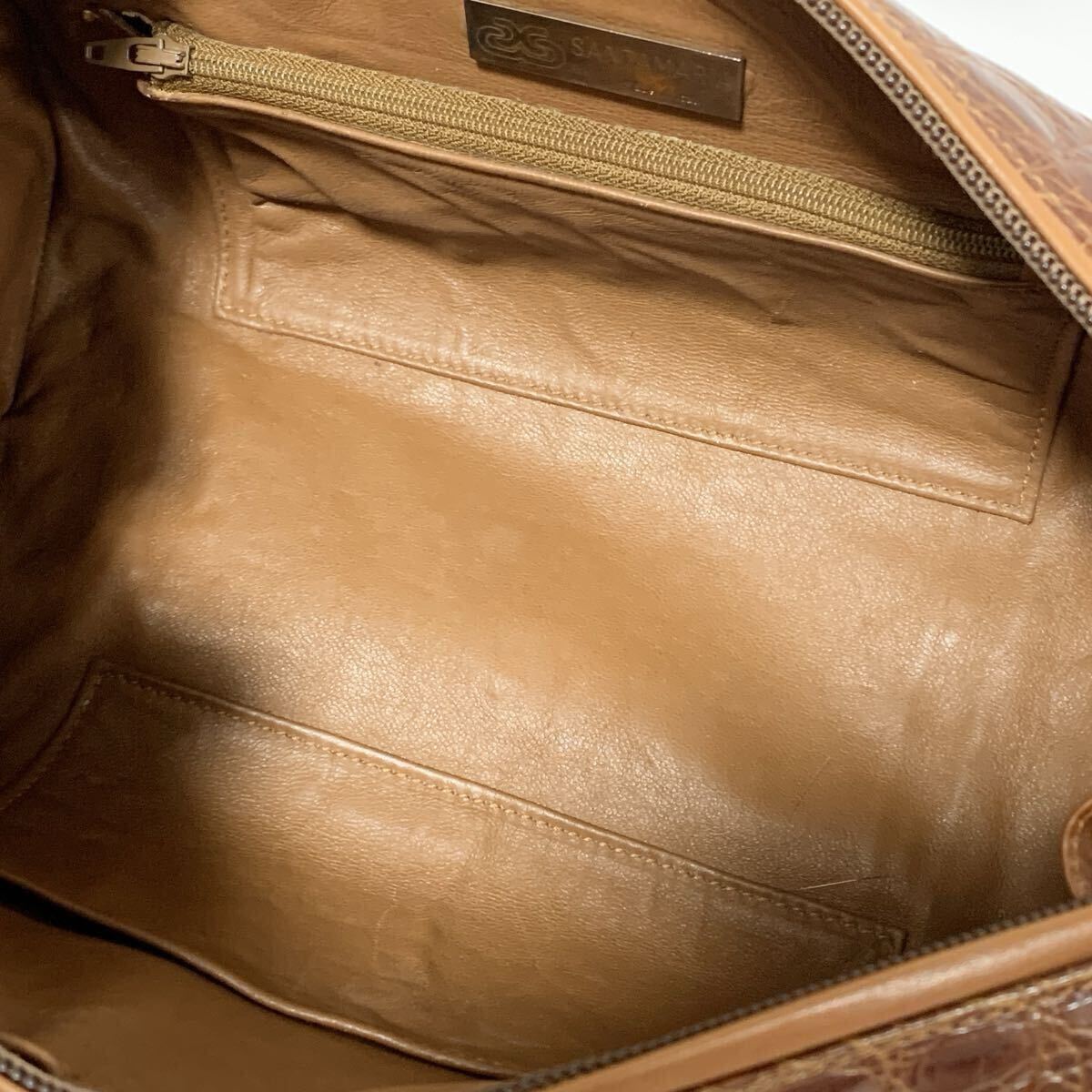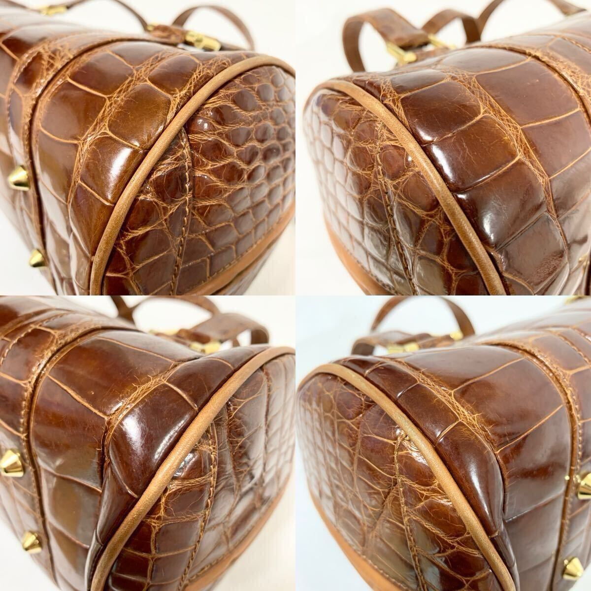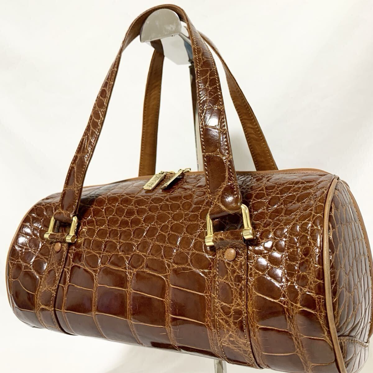1円 SANTAMARIA サンタマリア マットクロコダイル ハンドバッグ ボストン ブラウン 茶 ドラム型 ゴールド金具 レザー レディース ワニ本革