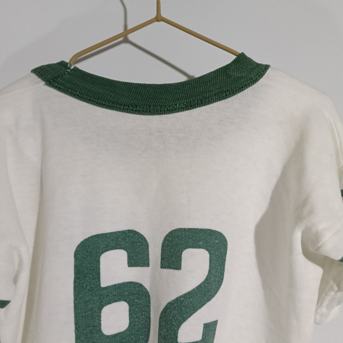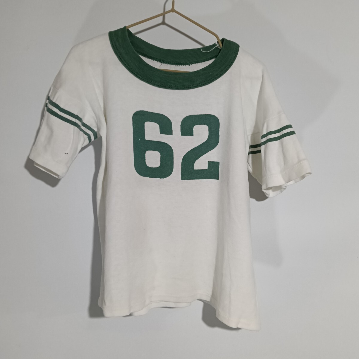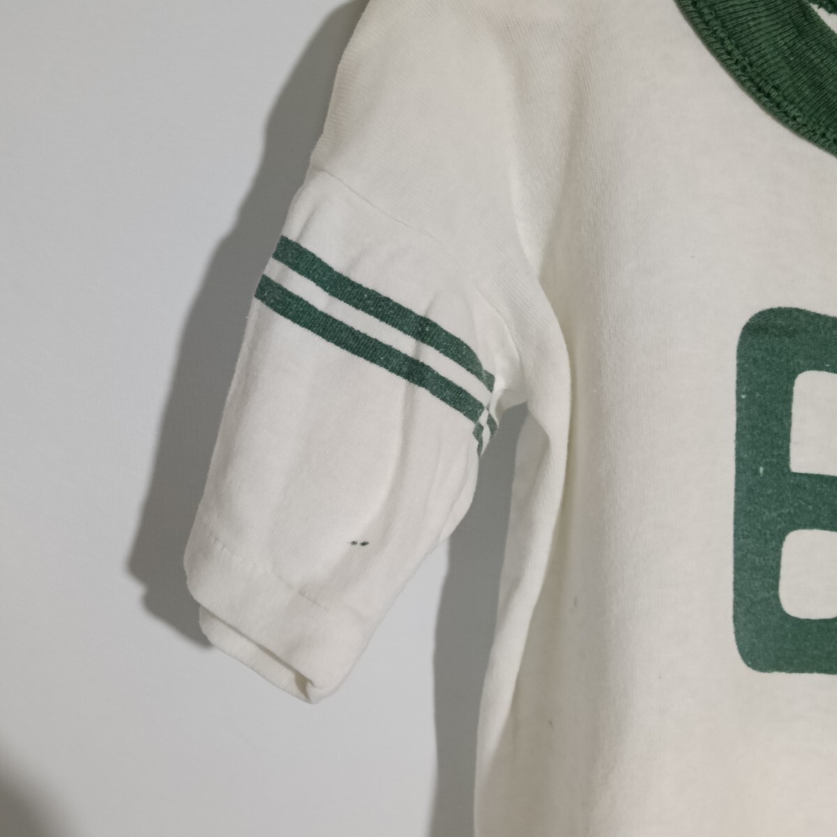 おそらく60sと思われるコットン素材のフットボールTシャツです。染み込みプリントで、大人用のサイズだったら10万近くするビンテージです。