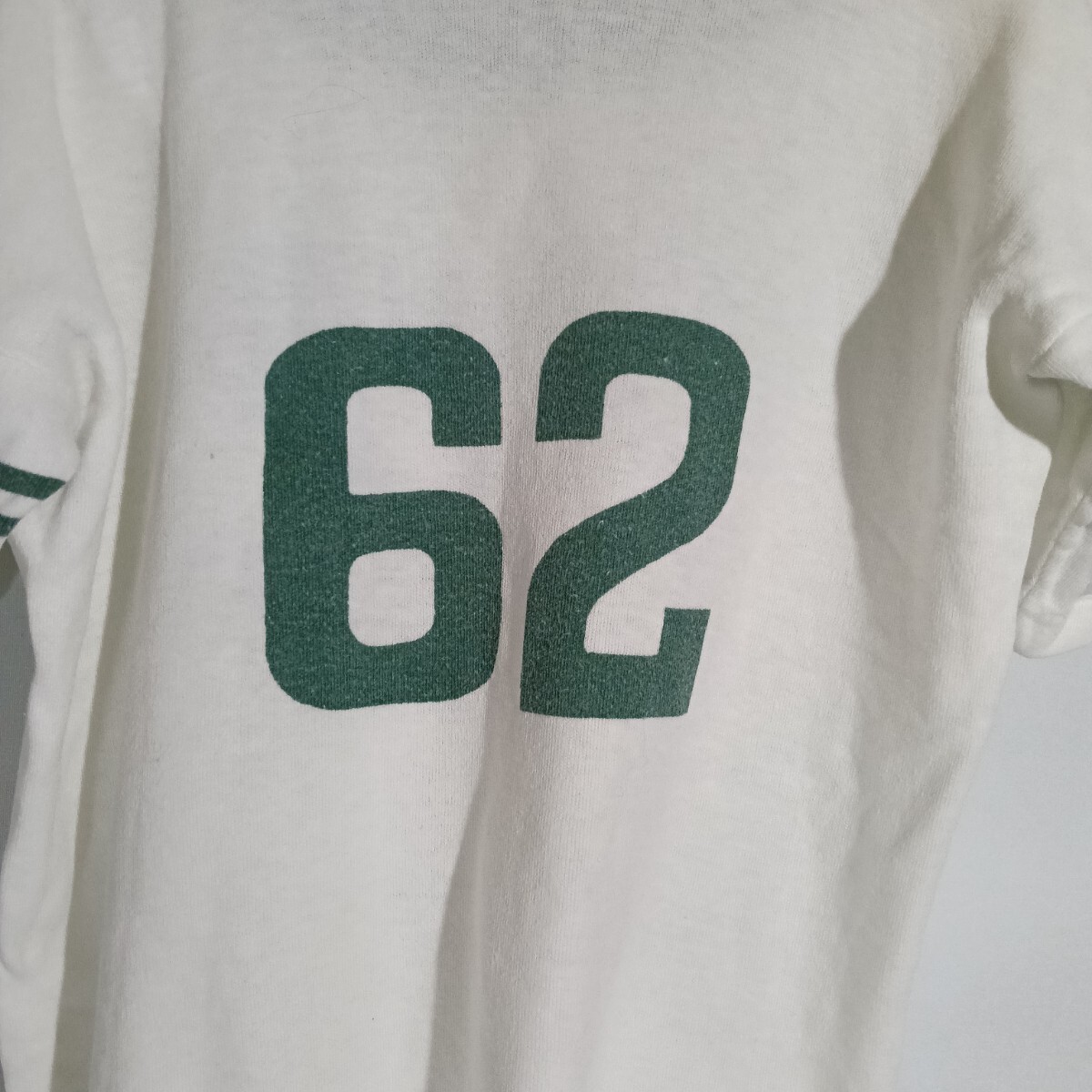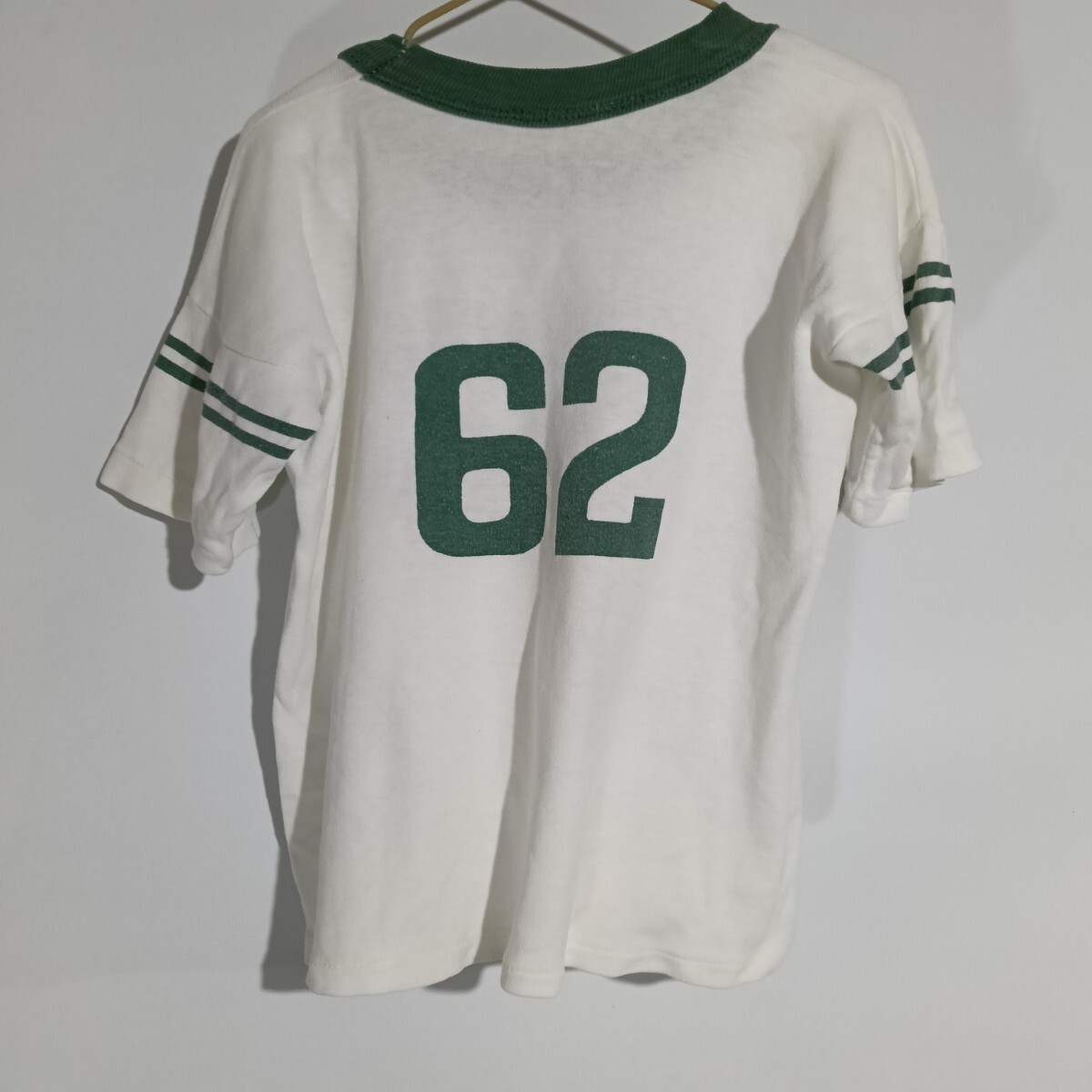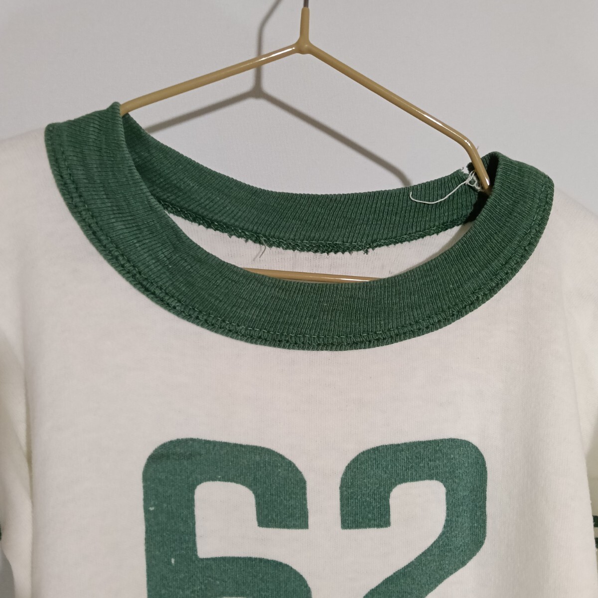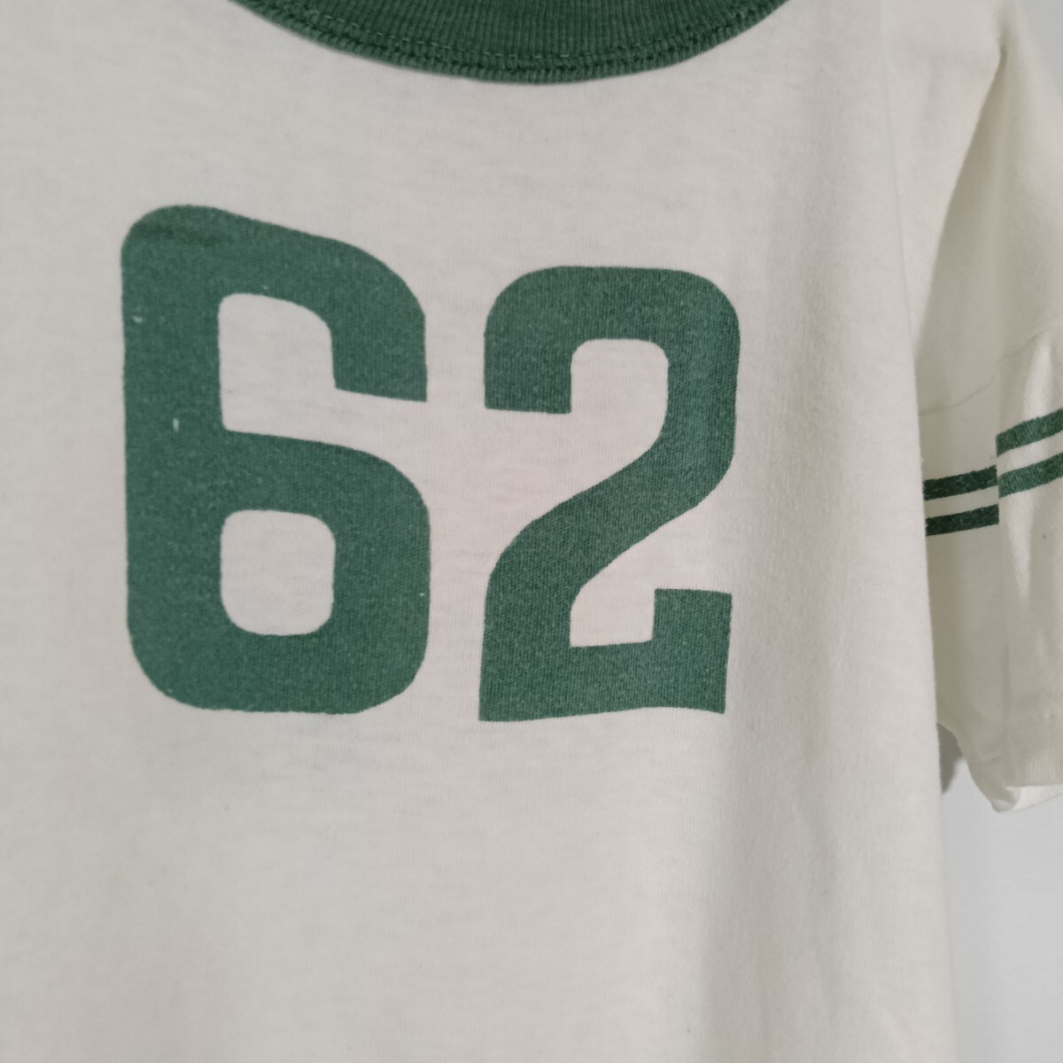 おそらく60sと思われるコットン素材のフットボールTシャツです。染み込みプリントで、大人用のサイズだったら10万近くするビンテージです。