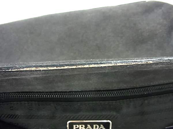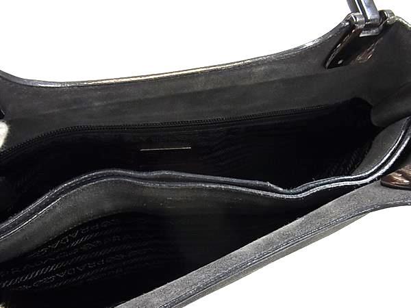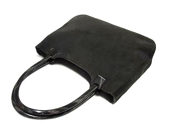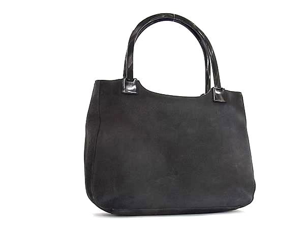 1円 PRADA プラダ プラスチックハンドル スエード トートバッグ ショルダー 肩掛けかばん レディース ダークグレー系×ブラウン系 FT1658