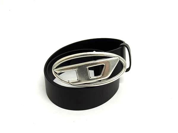 1円 ■美品■ DIESEL ディーゼル X08516 PR666 T8013 レザー シルバー金具 ベルト 表記サイズ 80/32 メンズ ブラック系 BN5590