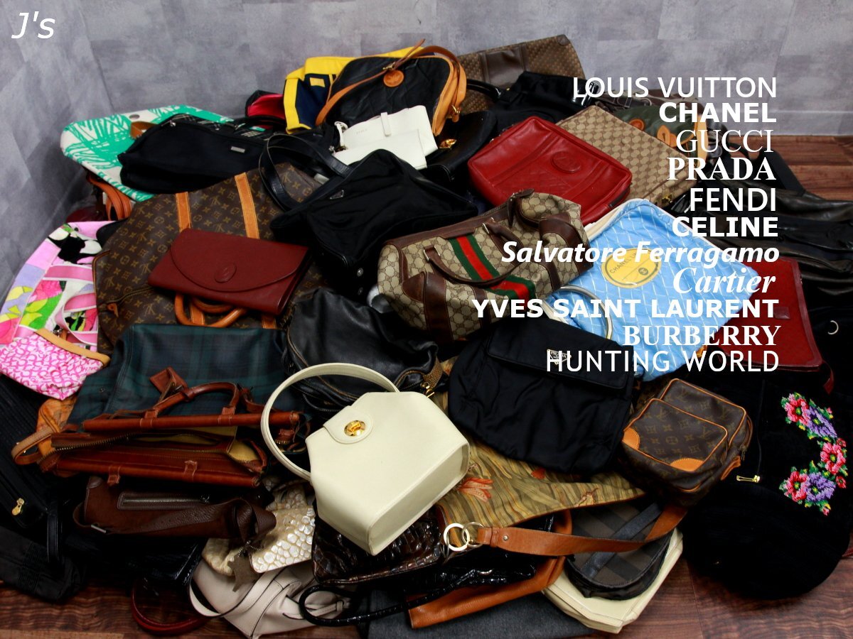1円■ルイ・ヴィトン シャネル OLD GUCCI プラダ フェンディ セリーヌ フェラガモ YSL カルティエ バーバリー■ジャンク バッグ 160点