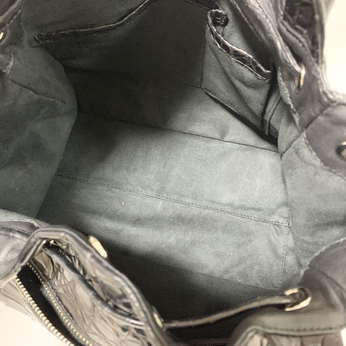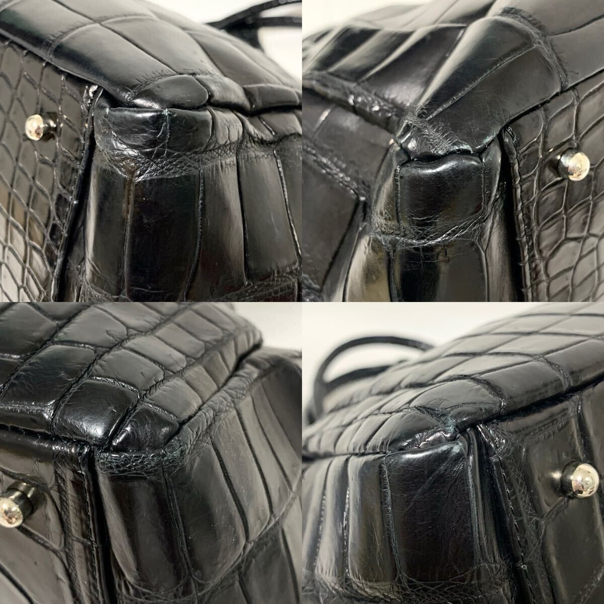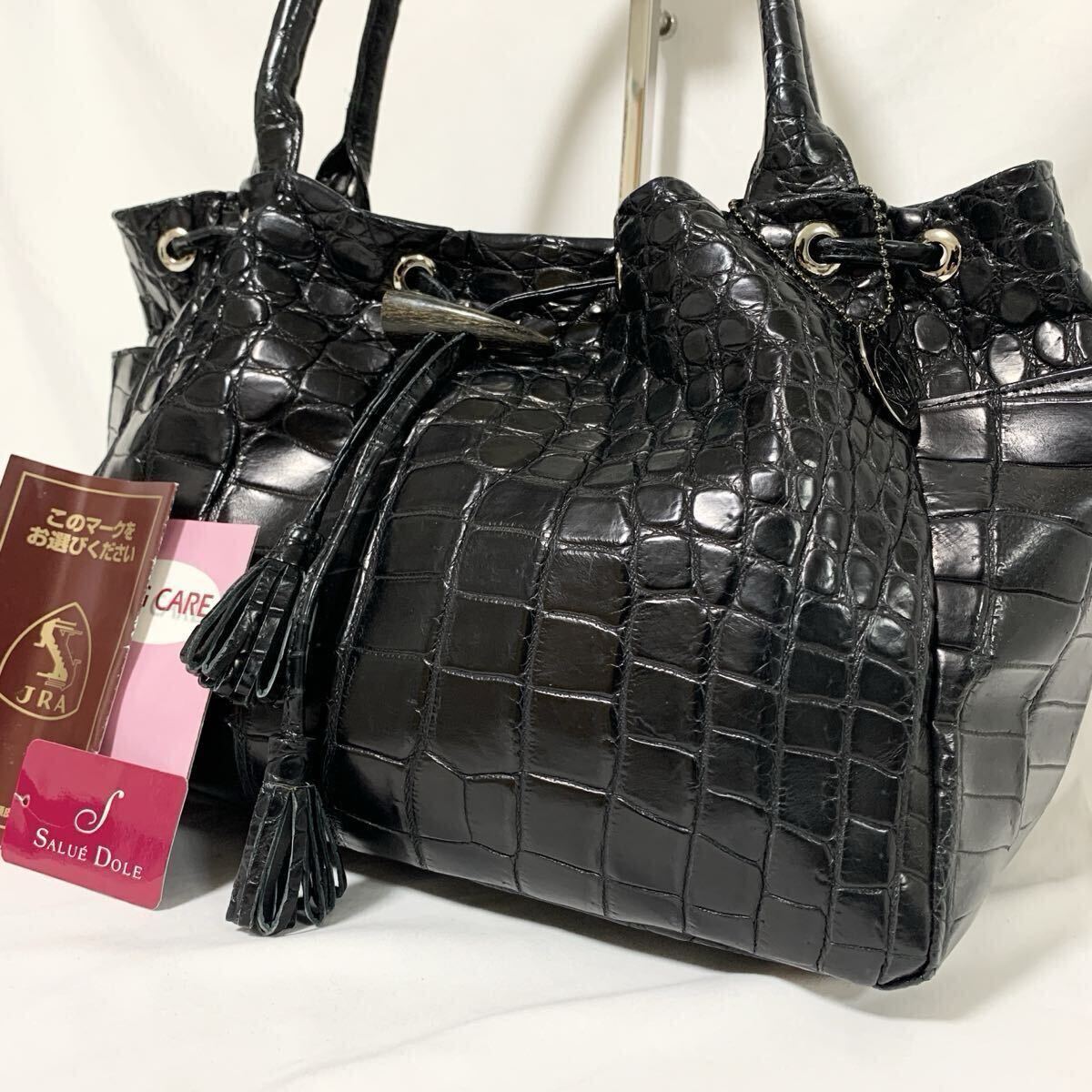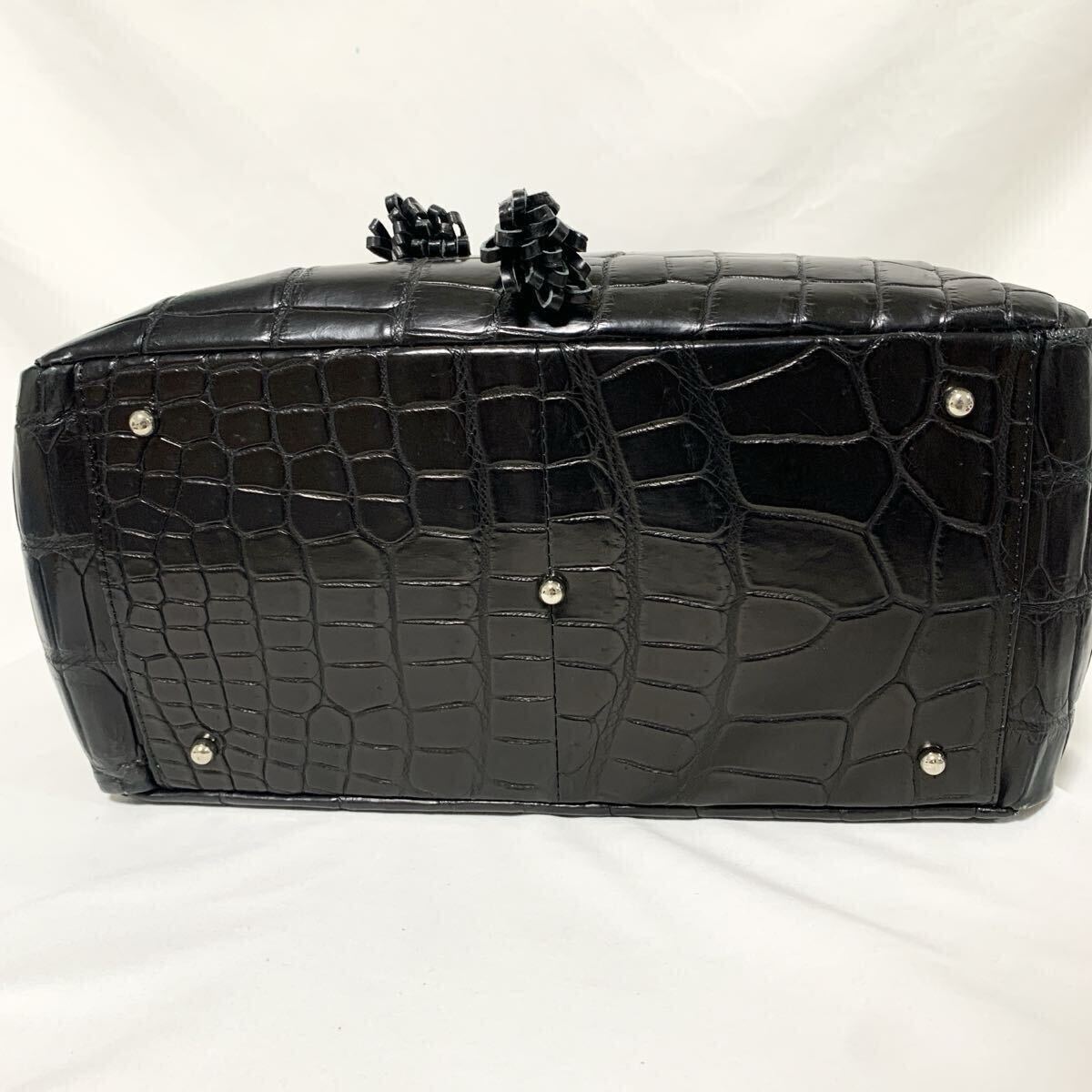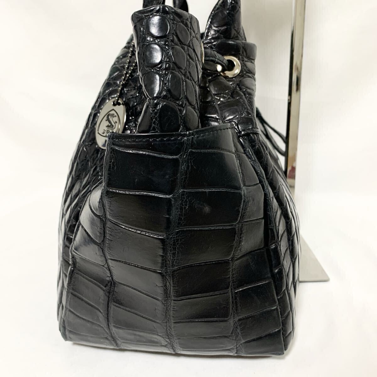 1円 マットクロコダイル トートバッグ ハンド ブラック 黒 シルバー金具 エキゾチックレザー レディース ワニ本革 巾着 センター取り肩掛け