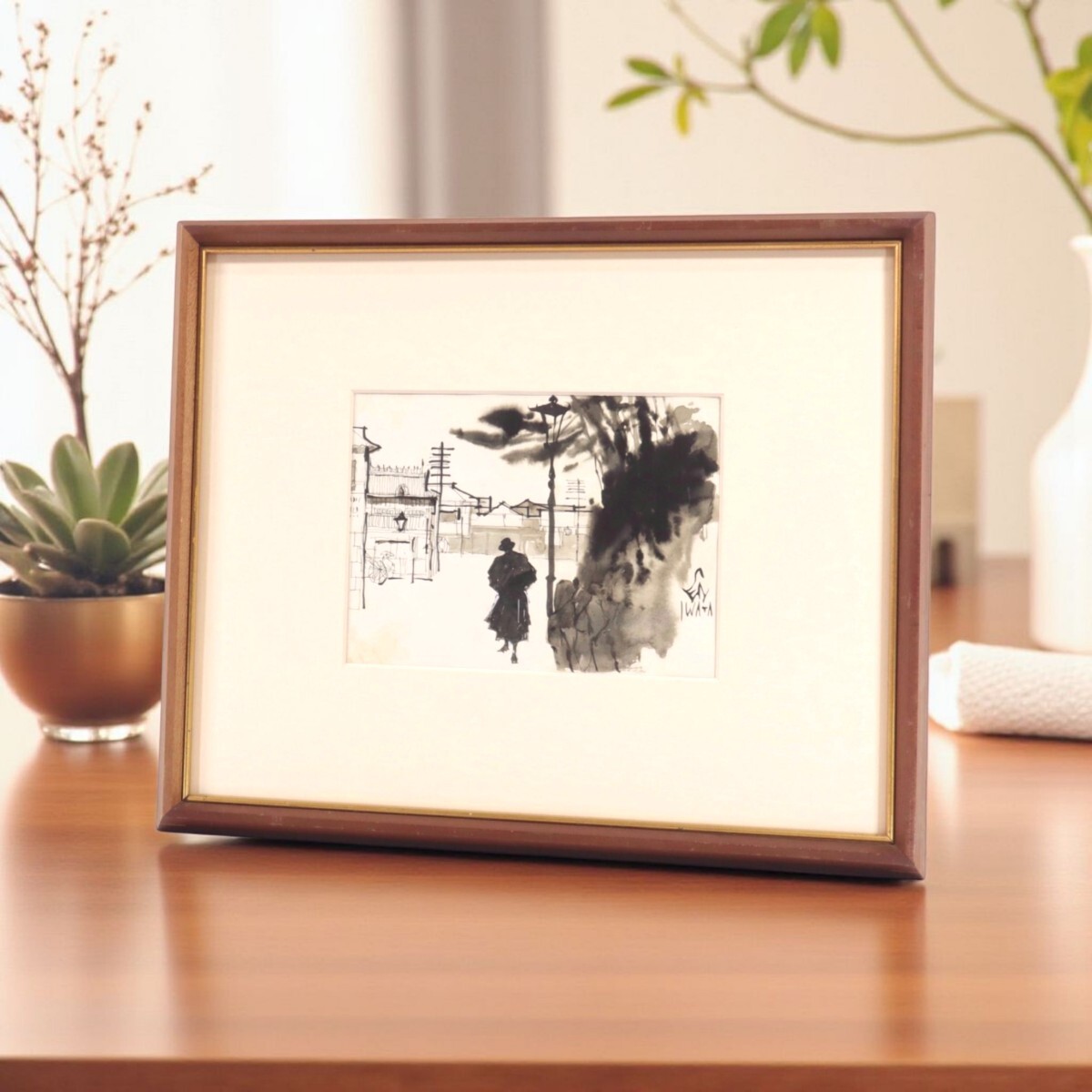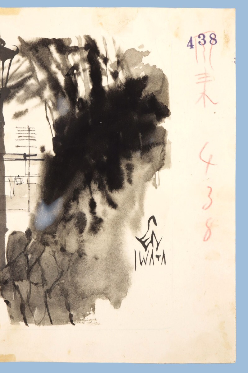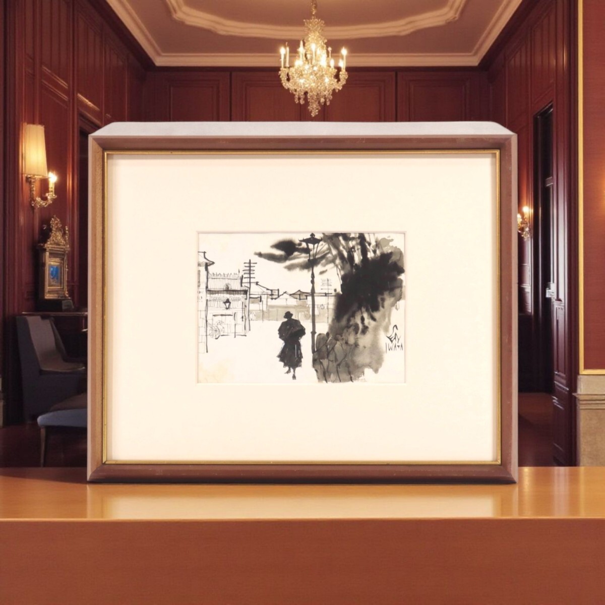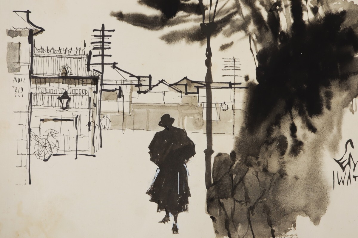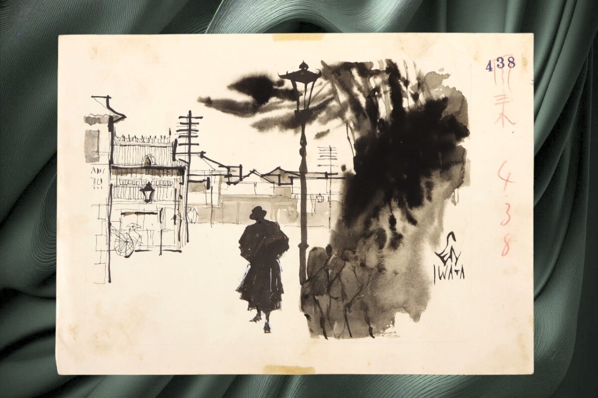 真作 岩田専太郎 水墨「風来物語より 438」窓寸 21.5×16cm 富田常雄の小説の挿絵原画 男気とサスペンス、そしていくつかの恋愛模様 11578
