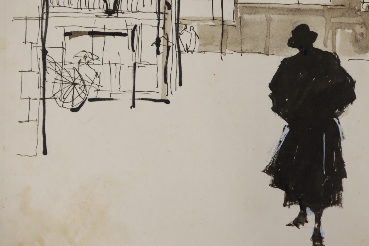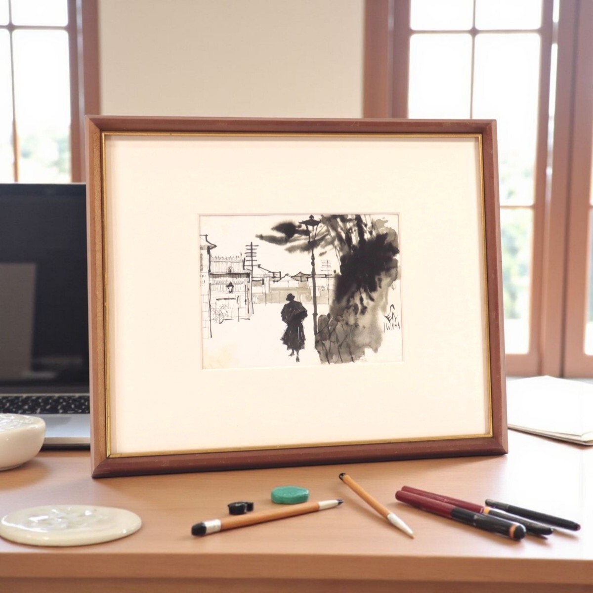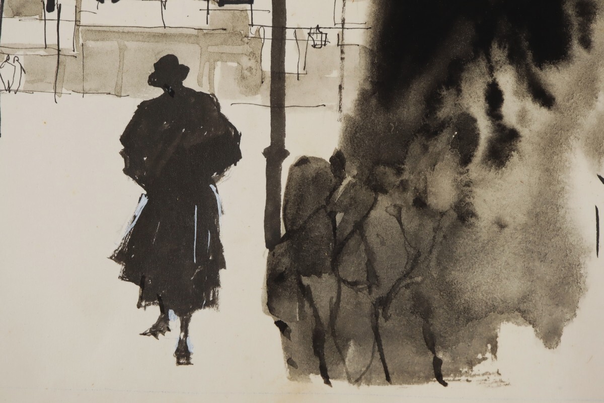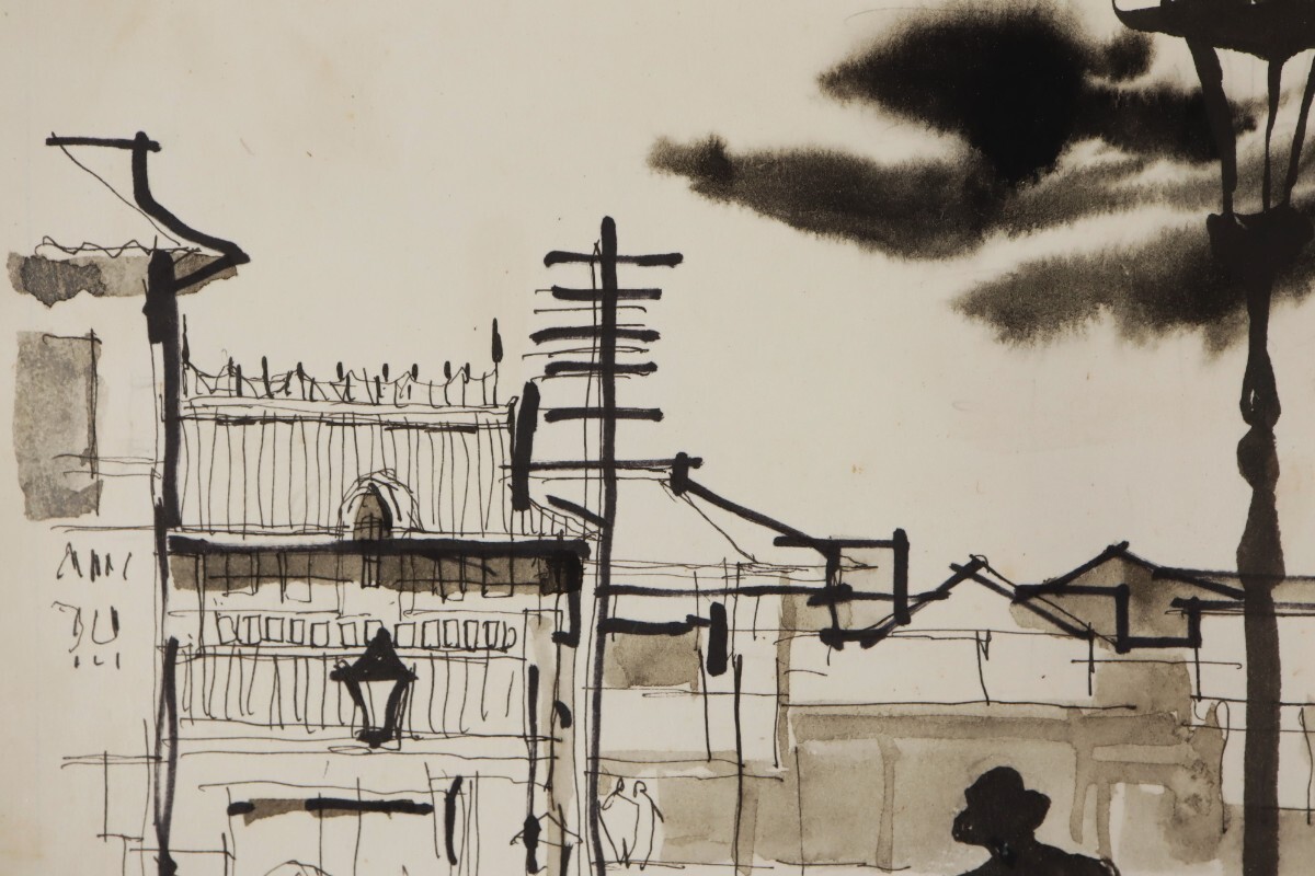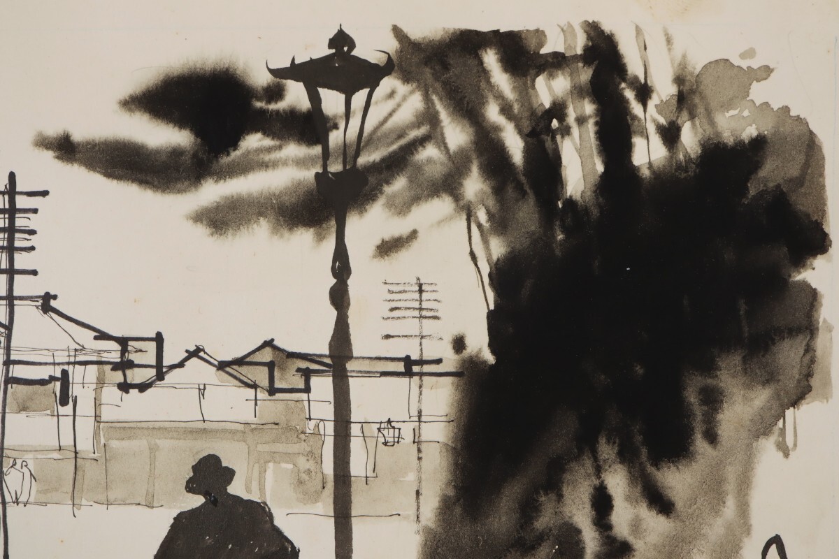 真作 岩田専太郎 水墨「風来物語より 438」窓寸 21.5×16cm 富田常雄の小説の挿絵原画 男気とサスペンス、そしていくつかの恋愛模様 11578