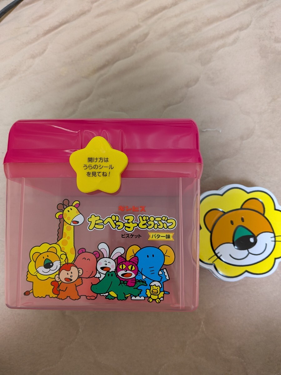 たべっ子どうぶつ空きケース、缶の2点セットです。