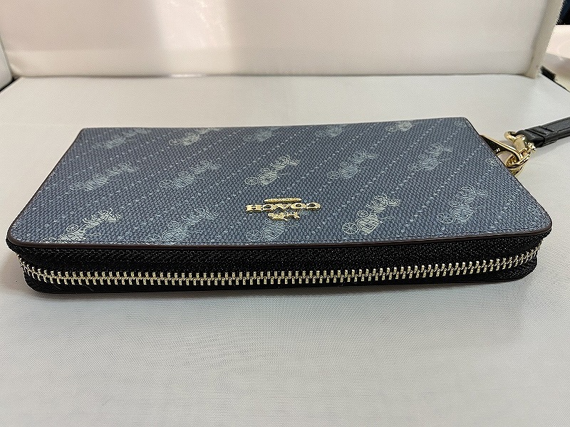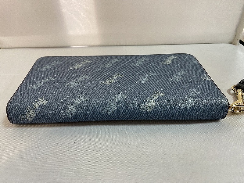 期間限定セール コーチ COACH ラウンドファスナー 長財布 ブルー・馬車 C3547