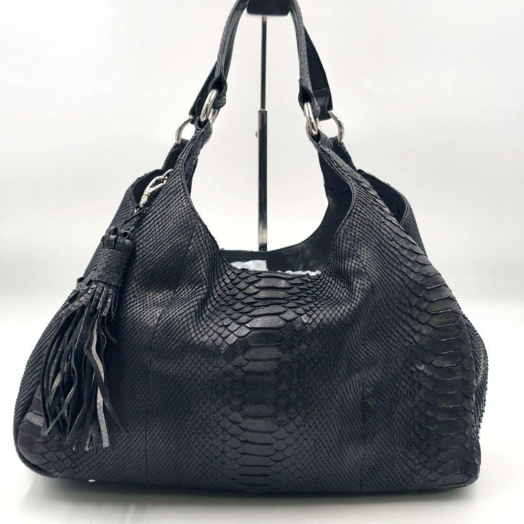 パイソン ショルダーバッグ ハンドバッグ バック A4 PC収納 エキゾチック ヘビ革 本革 レザー 肩掛け 大容量 チャーム シルバー金具 メンズ レディース ユニセックス