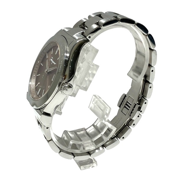 【ブランド】 フェラガモ 【商品名】 ベガ 【型番】 FF3 【シリアル】 K13060360 【ムーヴメント】 クォーツ 【材質】 SS 【サイズ】 ケース幅(リューズを含まず)×厚さ×腕回り(内径)×重さ 約38.2mm×9.8mm×18cm×122.6g 【カラー】 ブラウン文字盤 【付属品】 なし 【ランク】 C (使用感かなりあり) 【状態】 風防:キズなし 文字盤:劣化なし 針:劣化なし リューズ:小キズあり ケース:小キズあり ベゼル:小キズあり ベルトのキズ:小キズあり ベルトの伸び:やや伸びあり その他コメント:片側バックルに固着が見られます。電池切れの為、動作未確認。 ※商品到着後の修理等はお受けしておりません。ご了承ください。 | |
