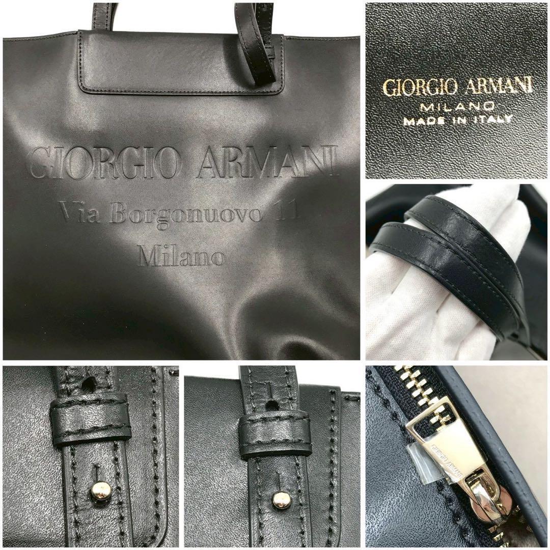未使用級/定価30万●ジョルジオアルマーニ GIORGIO ARMANI メンズ ビジネス A4収納可能 トートバッグ レザー ブラック 黒 肩掛け 書類鞄