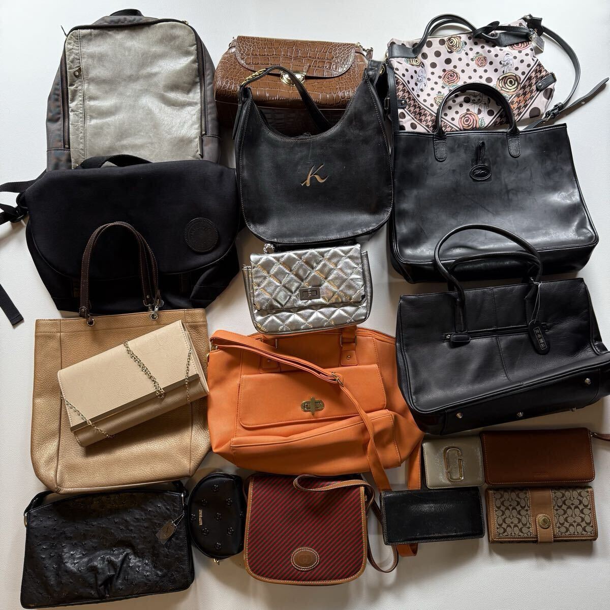 こちらはブランド品・ノーブランド品のバッグ、財布、ベルト等のまとめ売りです。