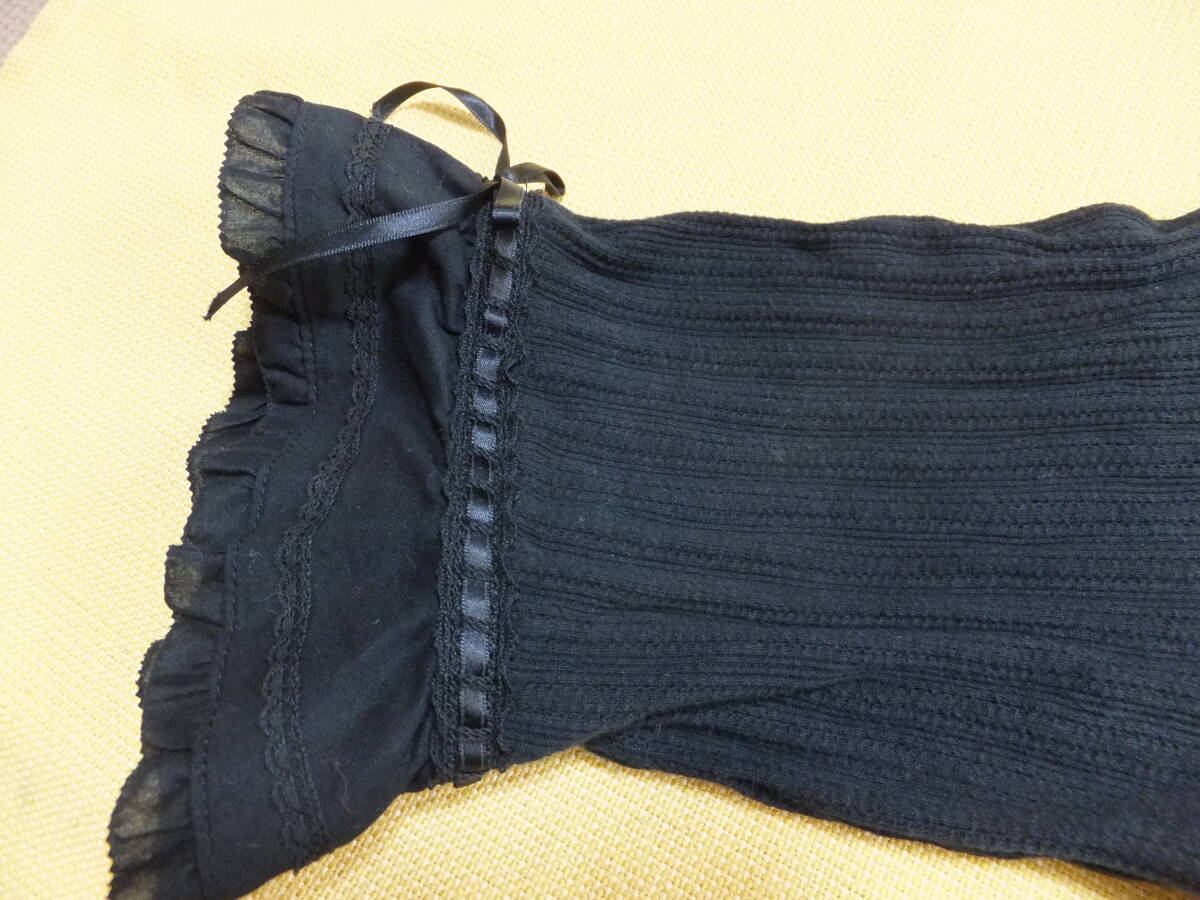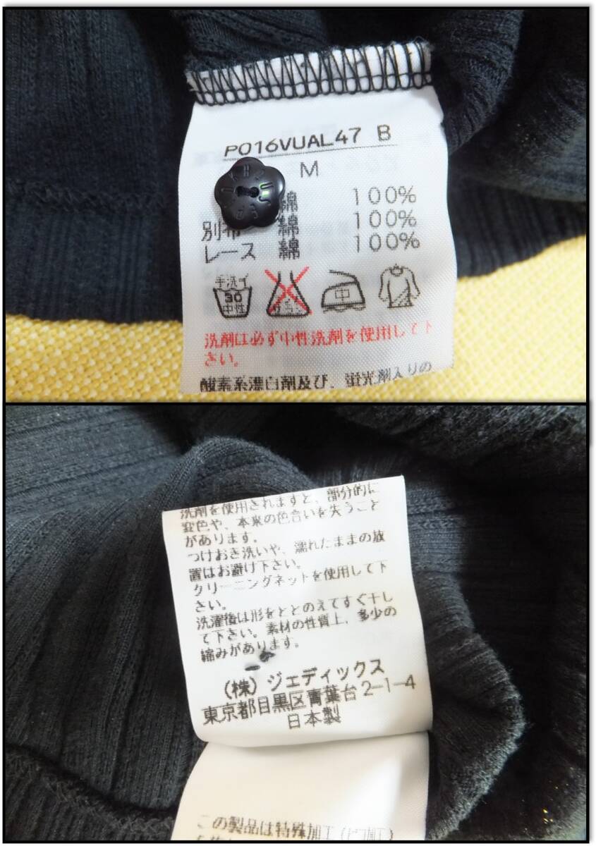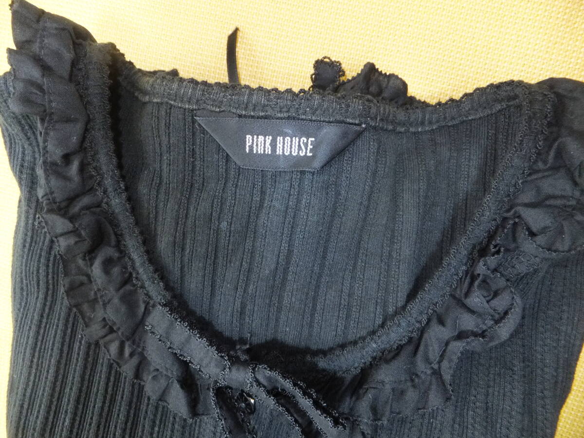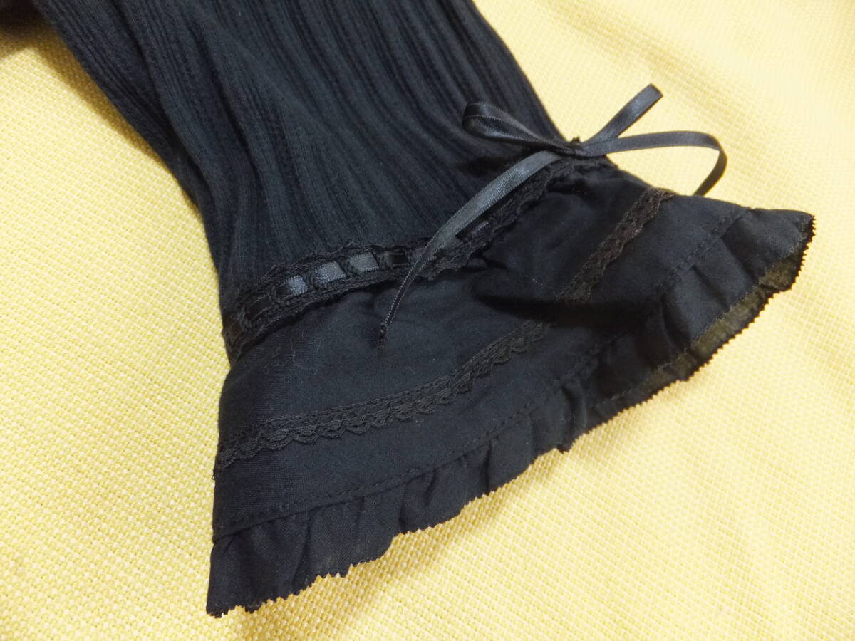 中古 PINK HOUSE ピンクハウス ブラック 黒 リブ 5分袖 前開き カーディガン トップス フリル リボン 伸縮性 日本製 ジェディックス 花型ボタン (15)