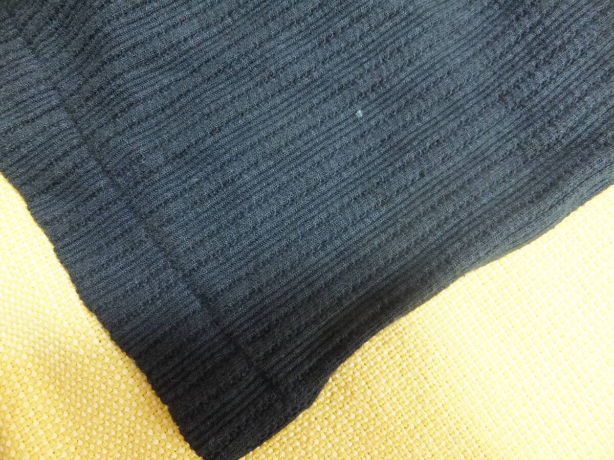 中古品につき、目立った傷や汚れは見当たりませんでした(見落としている可能性があります)が、小さな毛玉がある箇所があり、内側の首周りが若干白っぽくなっています。その他にもスレ、伸び、ヨレ、シワなどございますので、神経質の方は入札をご遠慮ください。