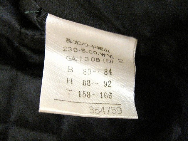 | 古いお品物ですが、目立つ汚れ等のないお品物です ※ 状態は、弊社基準により表記をさせて頂いております。 ※ リユース商品の為、表示しきれないダメージなどある場合もございます。 ※ 実店舗業務の運営上、質問にお時間をいただく場合や主観的なご質問にはお答えできかねる場合がございます。 サイズ | | サイズ : 2 【肩幅】 : 51.5cm 【身幅】 : 60.5cm 【着丈】 : 114cm 【袖丈】 : 52.5cm すべて平置きでの採寸となっております。 素人採寸ですので、ご参考程度にお願いします。 付属品 | ※ 出品商品はお写真に写るものが全てとなります。 | ※ ハンガー・スタンド等、備品を用いて撮影している場合がございますが、備品は付属いたしません。 店舗名 | 四日市店 | 発送について | ゆうパック、もしくは 佐川急便、ヤマト運輸(選択は出来ません) 元払のみの発送です。管理上その他の発送方法には、対応できません。お問い合わせは、ご遠慮願います。 | お支払いについて | 落札金額 + 消費税 + 送料 のお支払いとなります。 | 送料は送料欄にて、お届け先の都道府県をご選択頂き確認をお願い致します。 ※ 離島など別途追加が必要な場合もございます。 ※【お支払方法】銀行振込・代引きには対応しておりません。 同梱について | ※ 発送の拠点が複数ございます。同梱できない場合は個別配送となりますので、ご容赦下さい。 | ご落札の流れ | ヤフオク!ストアが出品した商品を落札した場合、個人が出品した場合とは取引方法が異なります。また、ストアとの取引では商品受け取り後の受け取り連絡は必要ありません。 | >> ヤフオク! リンクはコチラ ご注意事項 | お写真は撮影時の状態です。 | 店頭にて併売しているお品はコンディションが変わる場合もございます。 購入時に著しくコンディションが変わってしまっている場合はご連絡いただければ真摯に対応致します。 お色・状態に関しては、モニター環境や、太陽光・室内ライトなどの環境により、見え方が違う事もございますので、ご理解頂ければ幸いです。 中古品ですのでノークレームノーリターンでお願い致します。 材質タグがある場合は、写真撮影しておりますので そちらでご確認願います。 他店舗でも同時に販売しておりますので、売り切れの際は ご容赦頂ければ幸いです。 |