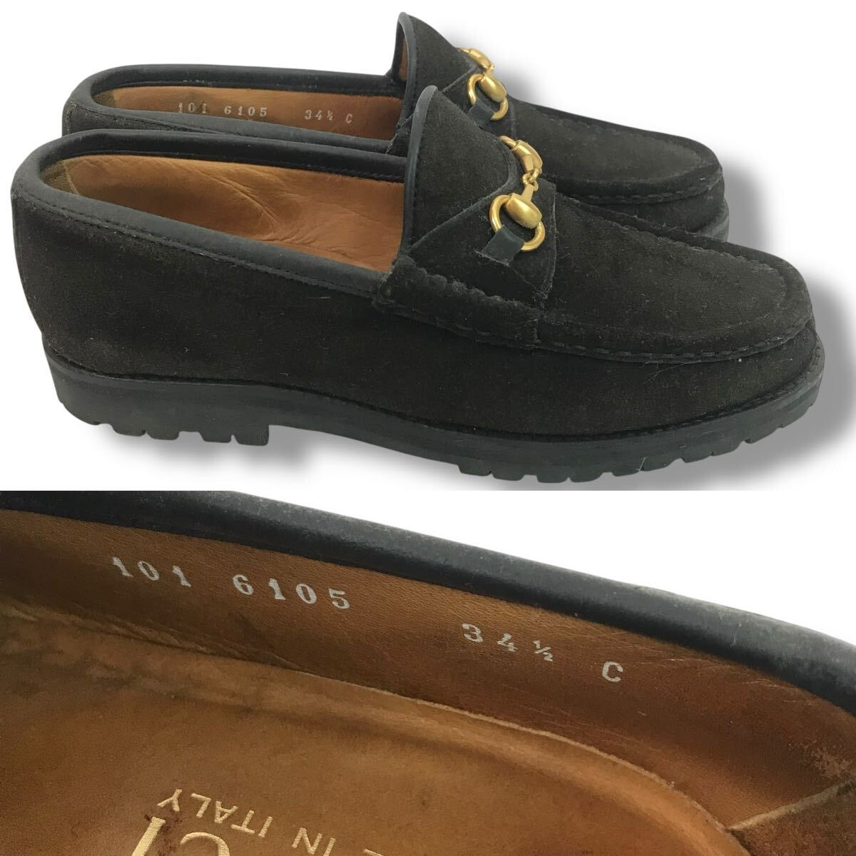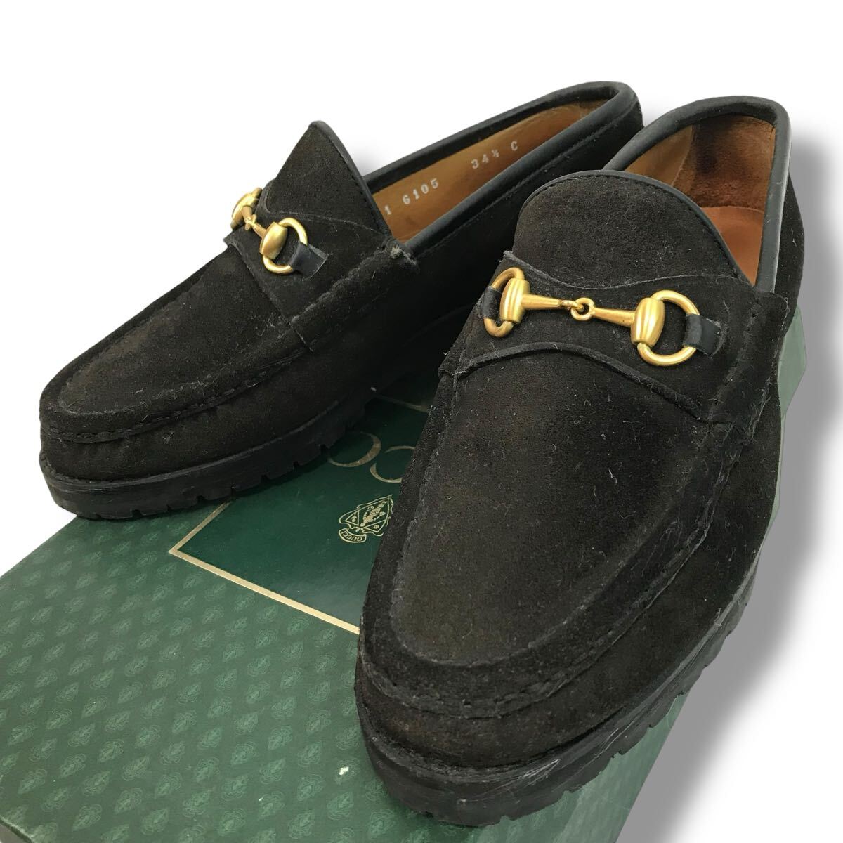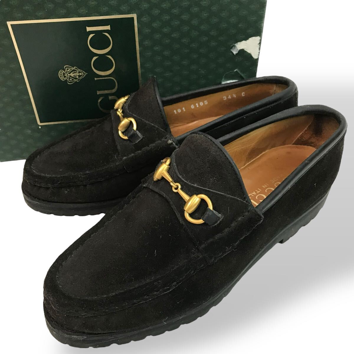 d56 Vintage GUCCI グッチ ホースビット ローファー スエードレザー シューズ 革靴 34.5 ダークブラウン イタリア製 正規品 ヴィンテージ