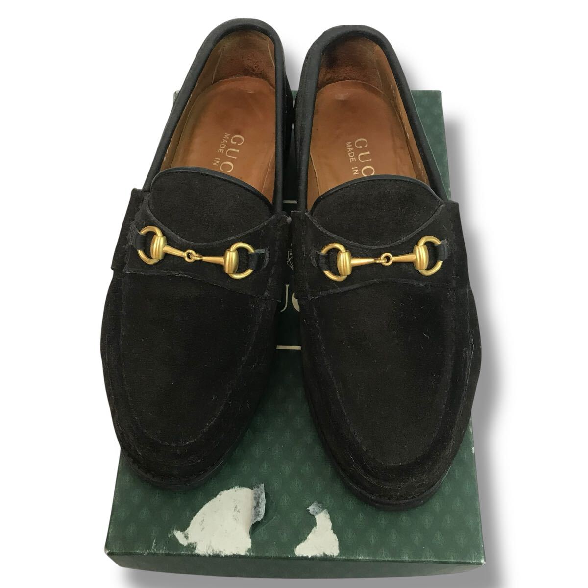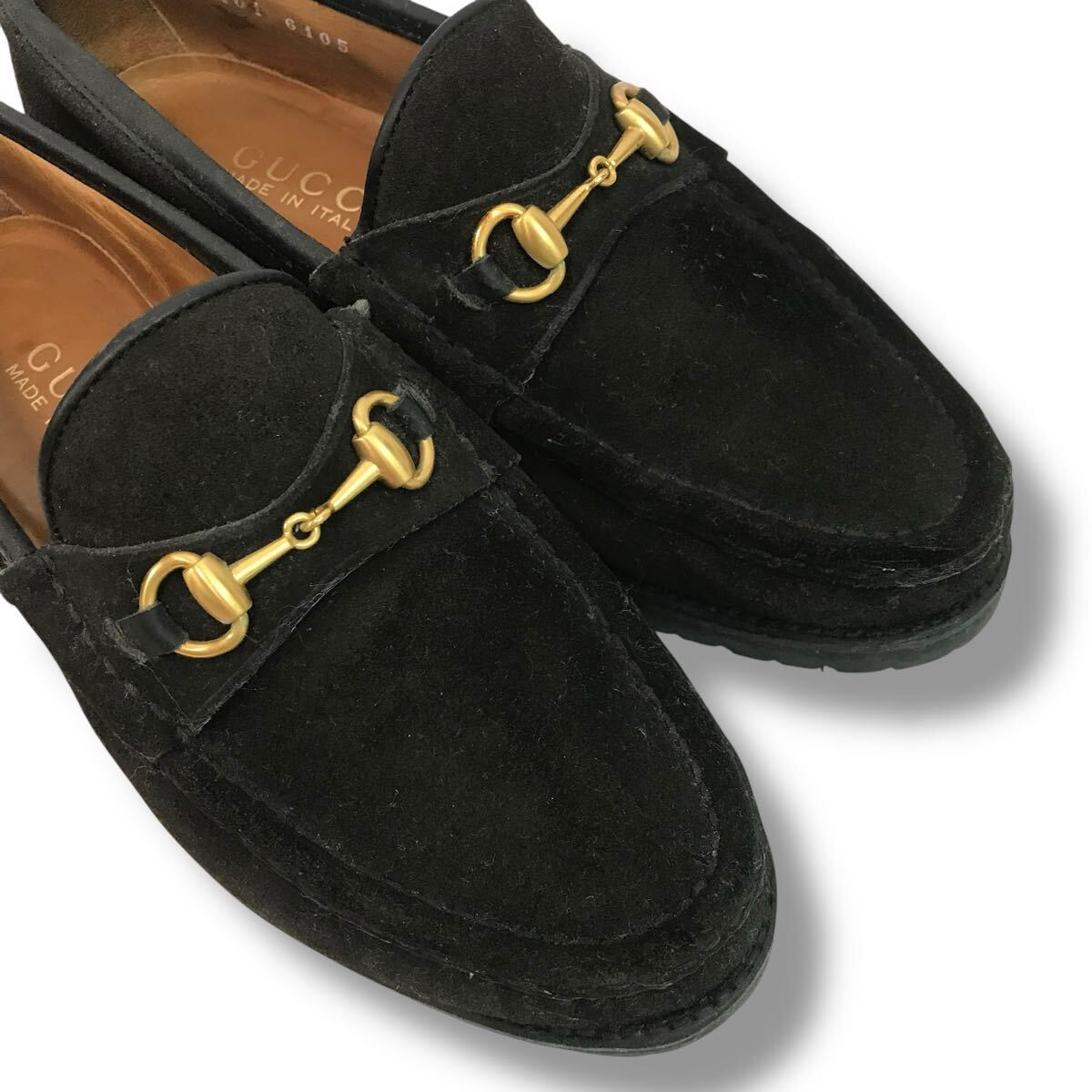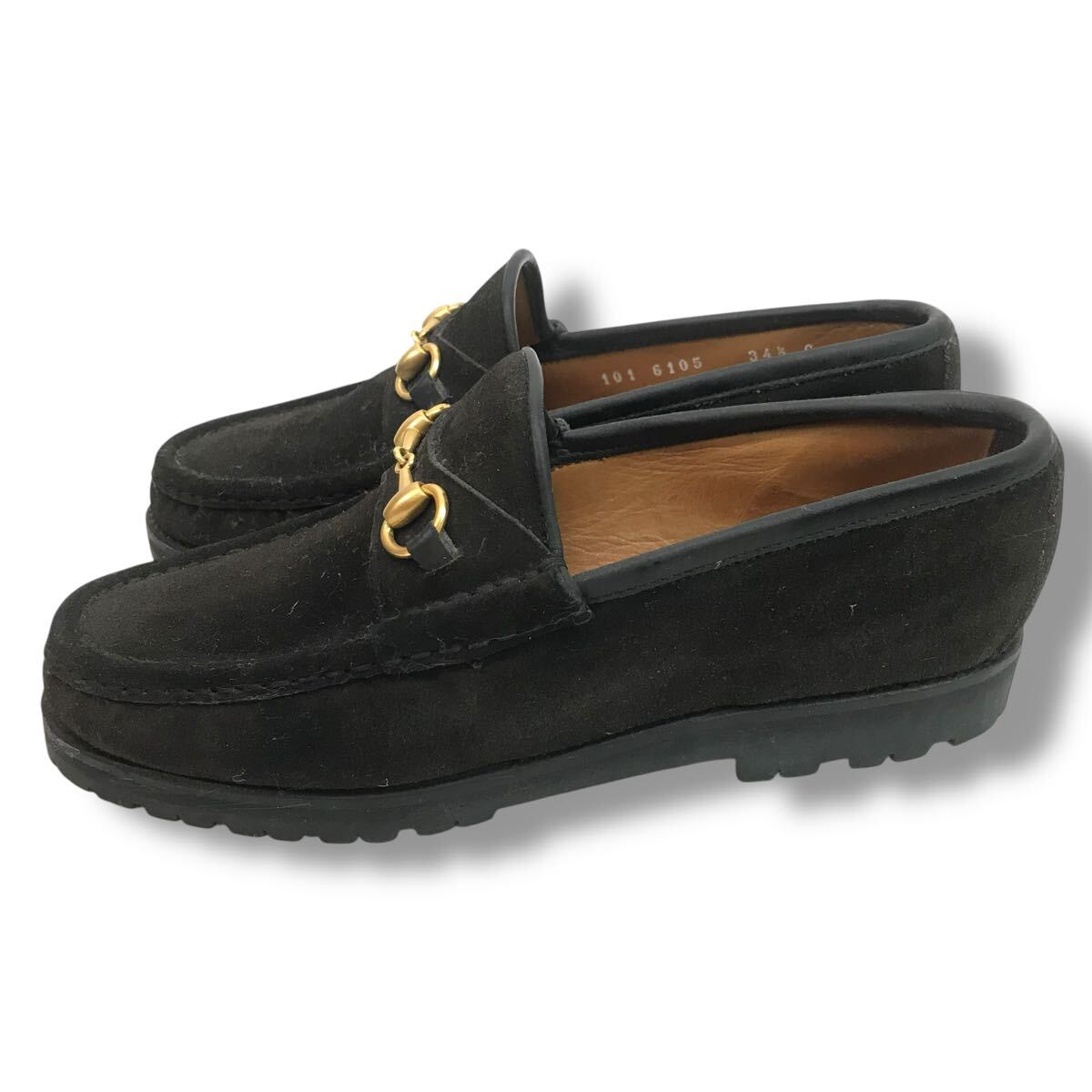 d56 Vintage GUCCI グッチ ホースビット ローファー スエードレザー シューズ 革靴 34.5 ダークブラウン イタリア製 正規品 ヴィンテージ