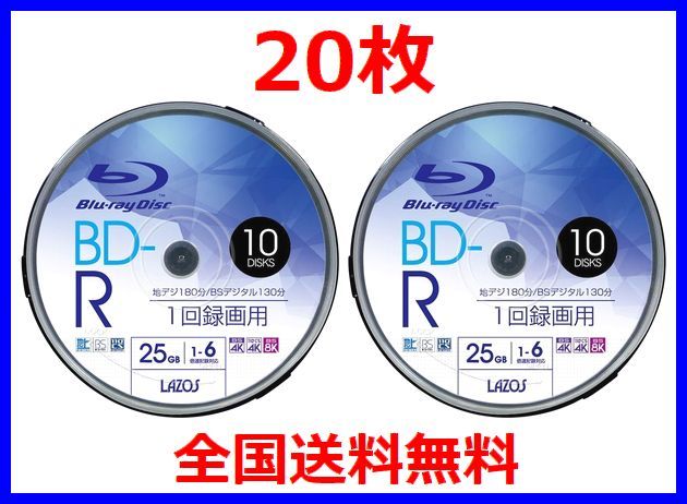 送料無料!Lazos BD-R 25GB 20枚 1-6倍速対応 ブルーレイ ワイド印刷対応・ L-B10P x2