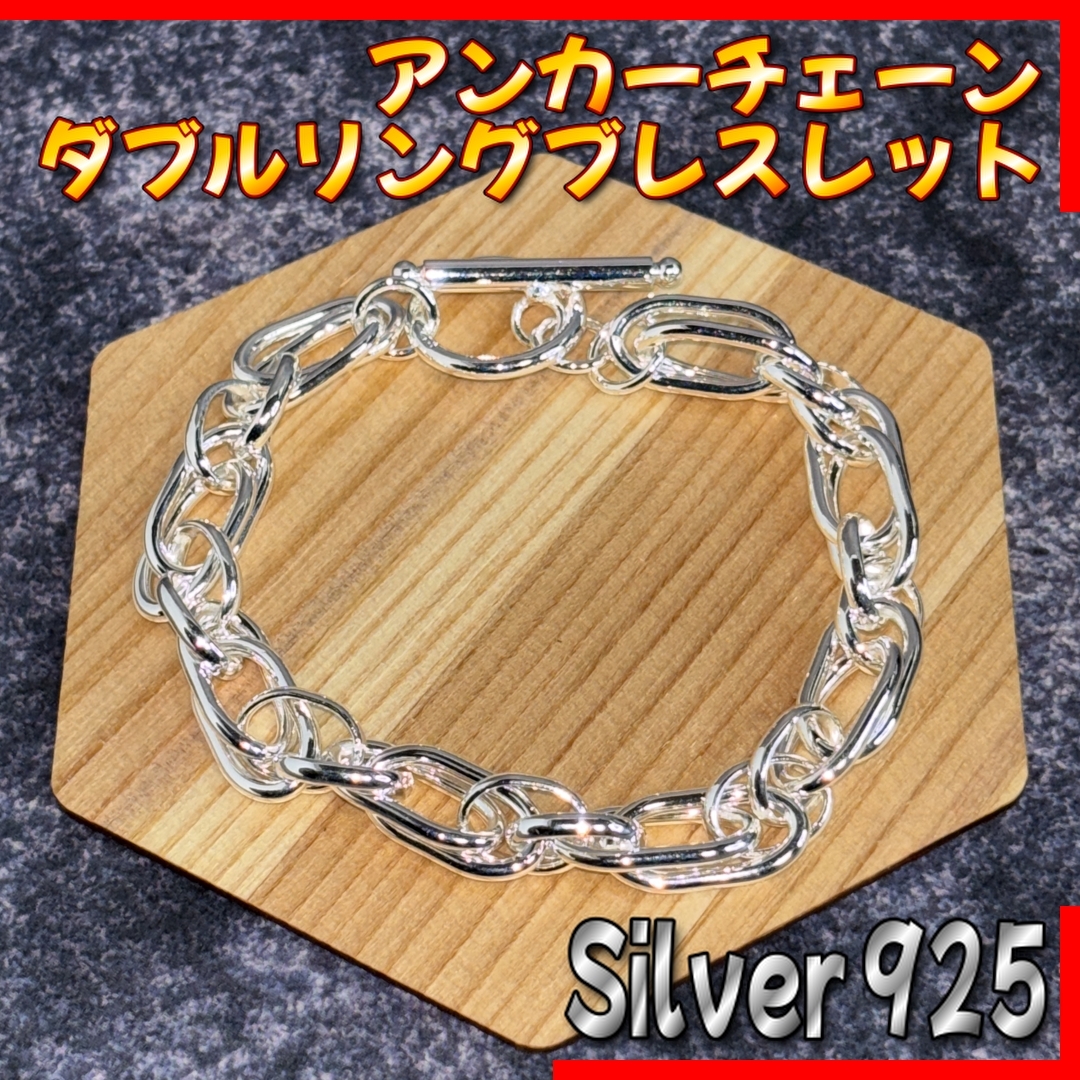 シルバー925 アンカーチェーン ダブルリング マンテルブレスレット メキシカンジュエリー シェーヌダンクル ブレスレット レディース