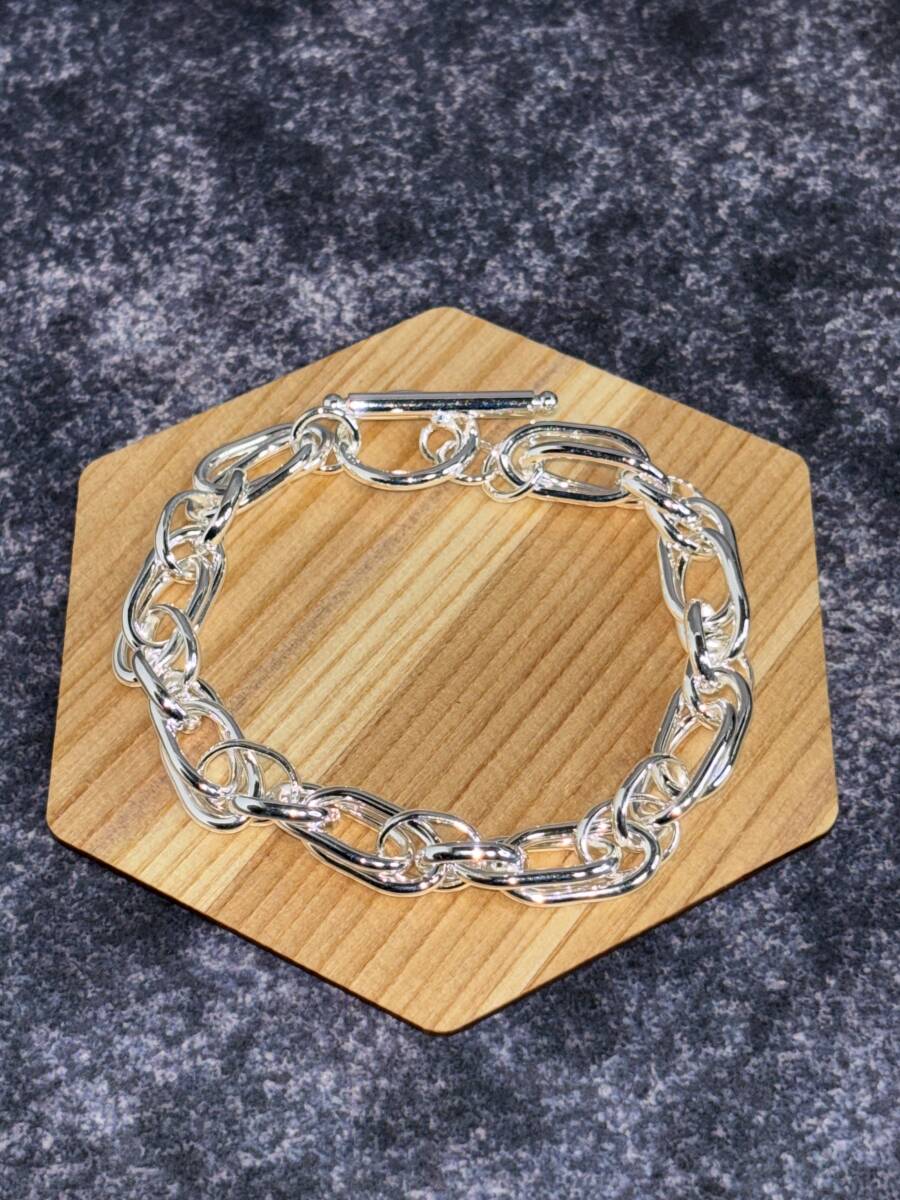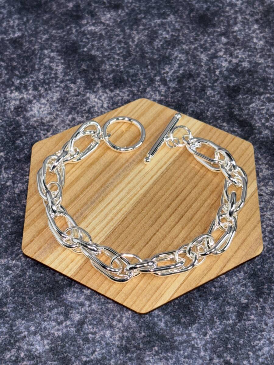 立体感のある個性的なダブルチェーンデザインが魅力のシルバーブレスレットです。