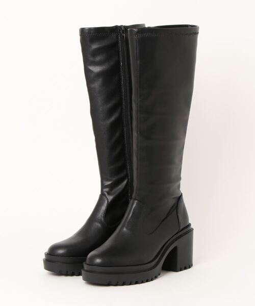 キーワード:ブーツ レディース ヒール プレーントゥ ロング 厚底 紐なし 秋 冬
