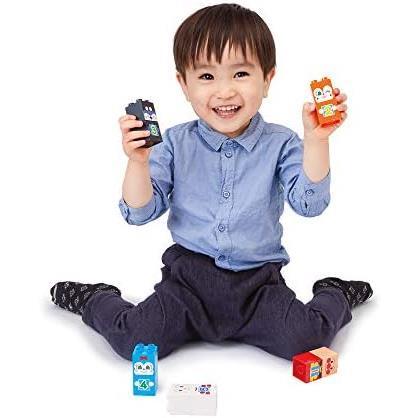 10体のキャラクターブロックの裏には数字が一目で学べるイラスト入りで、はじめてのすうじ遊びにぴったりです。