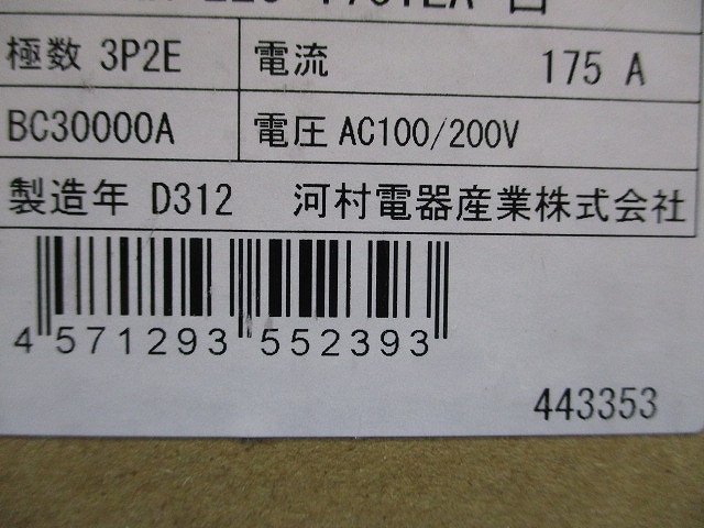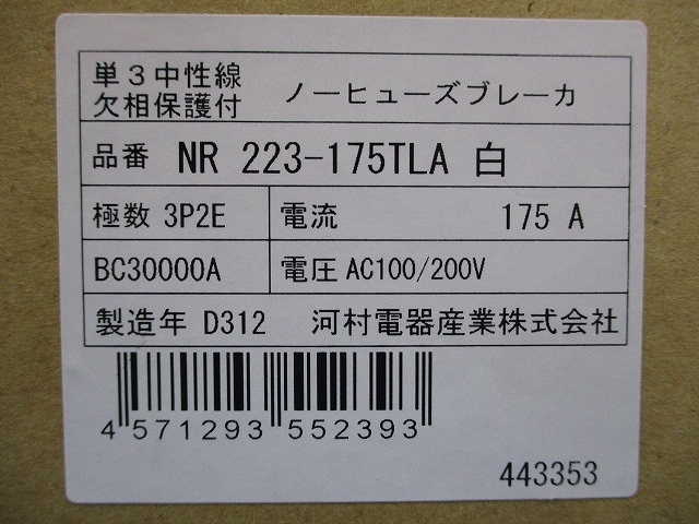 ノーヒューズブレーカ(単3中性線欠相保護付) 白 河村電器産業 NR223-175TLA