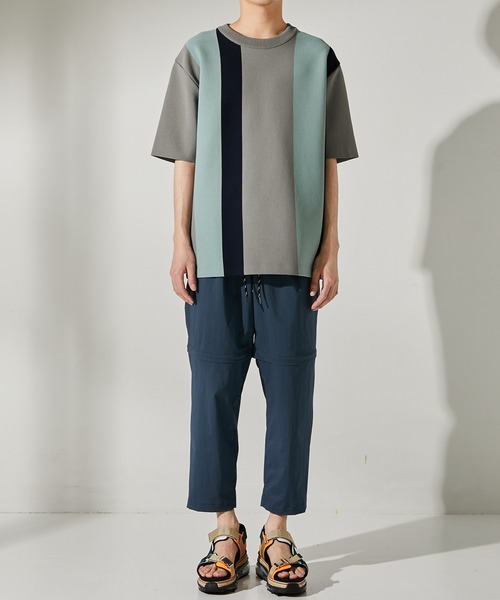 キーワード:セーター ニット メンズ クルーネック ストライプ 半袖