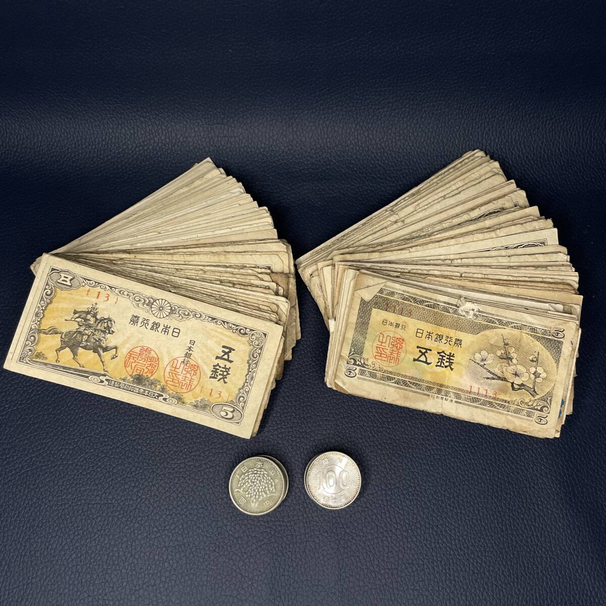 〇日本の古紙幣・硬貨 5銭・10銭札 200枚、旧100円硬貨 10枚 おまとめセット〇om244 ・梅 73枚 ・楠木正成像 45枚 ★10銭札 八紘一宇塔 82枚 計200枚 | |||